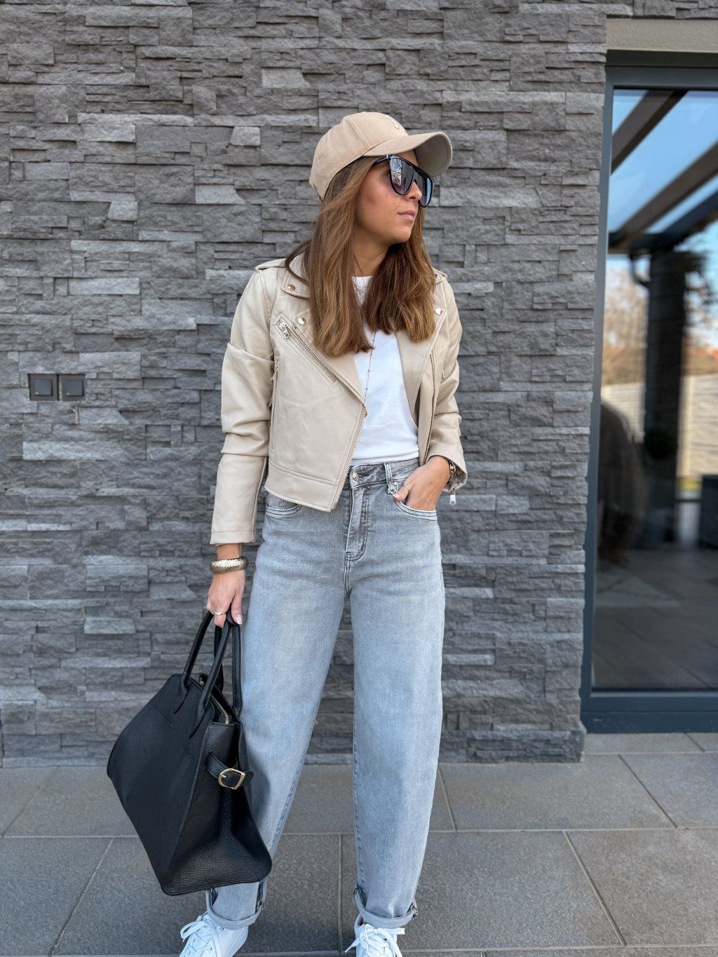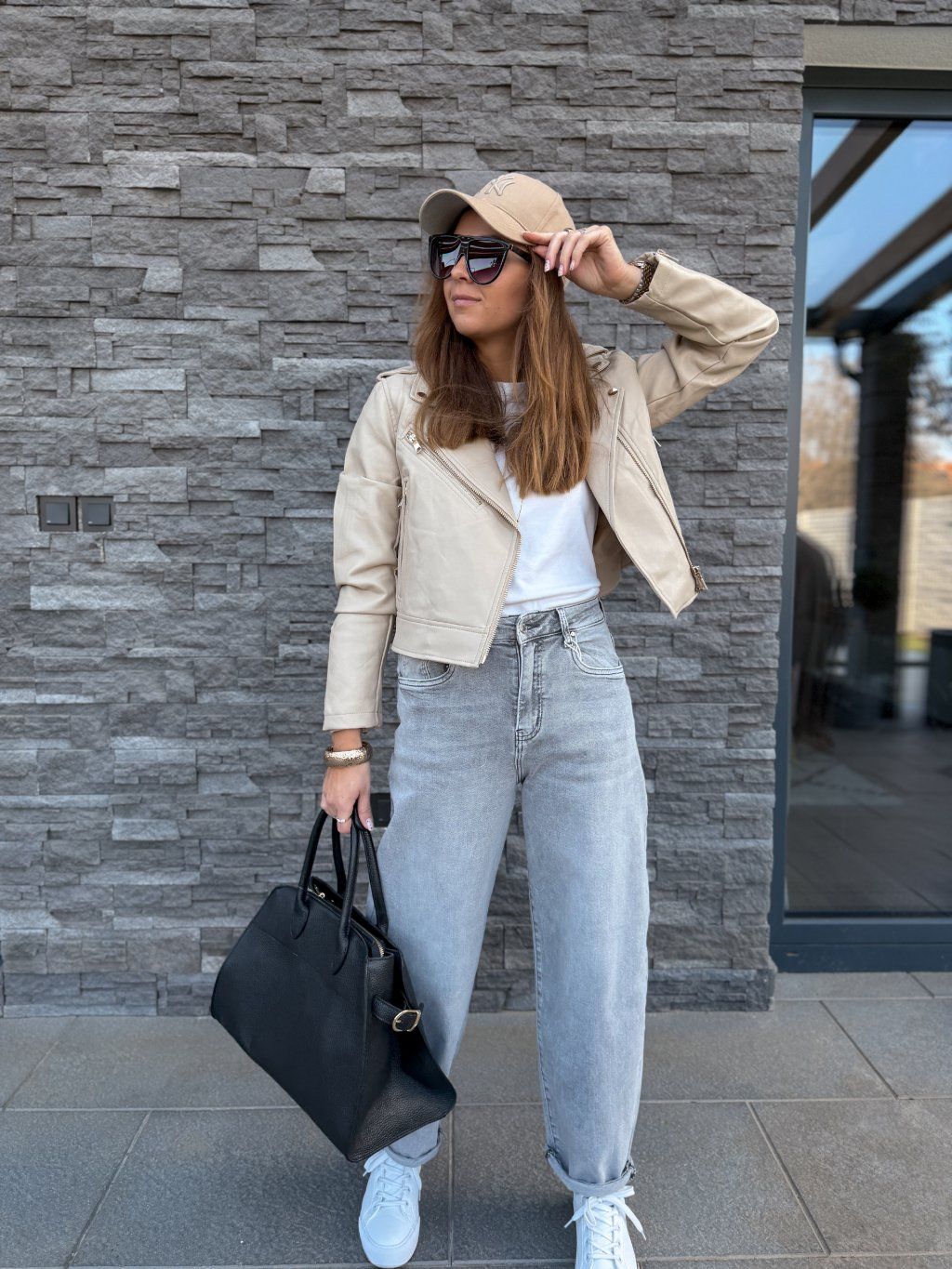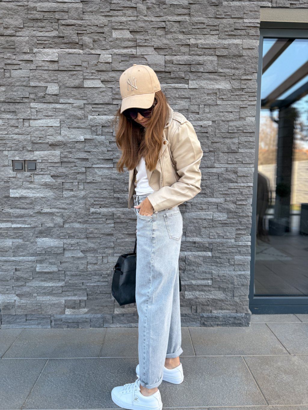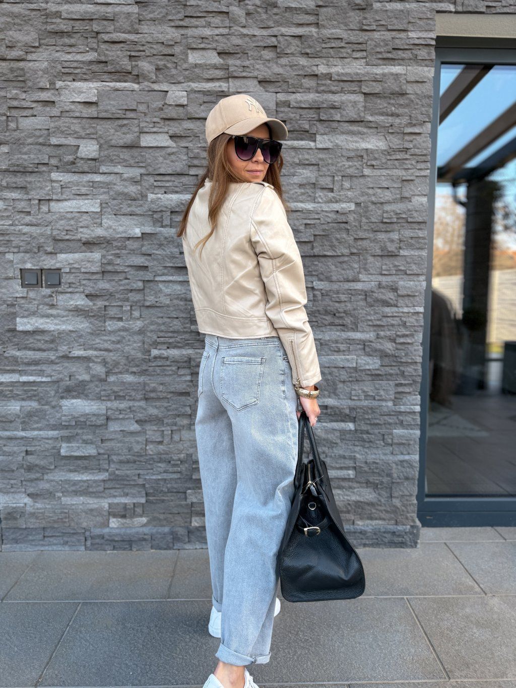 Extra pohodlné, světle šedé džíny. Jsou trendy barrel střihu, mají vysoký pas.