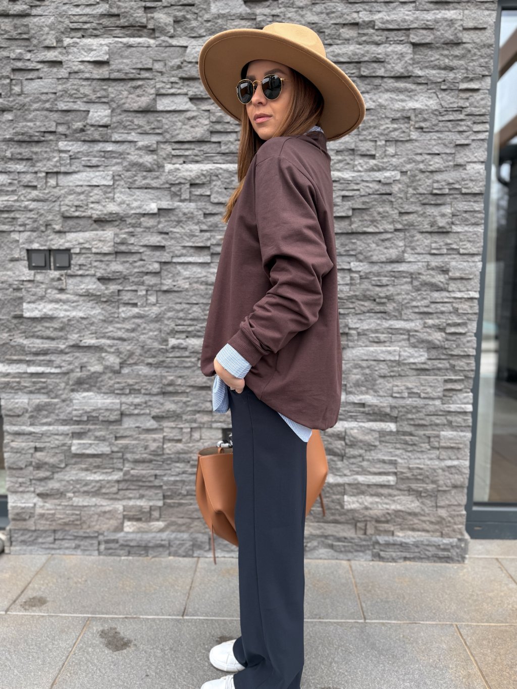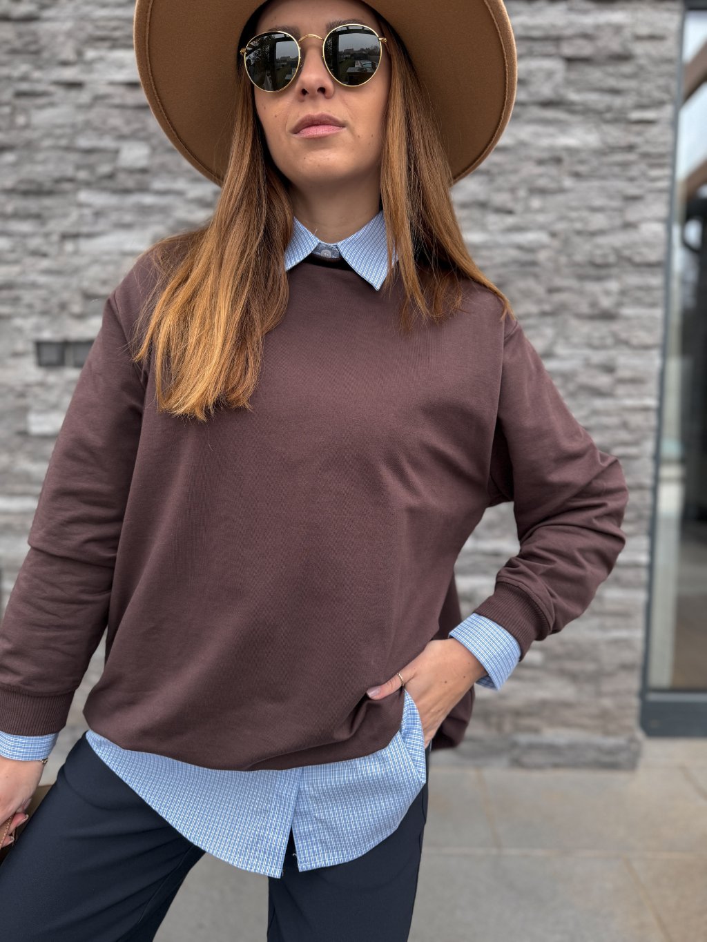 Krásná, bavlněná mikina v božské tmavě hnědé barvě.