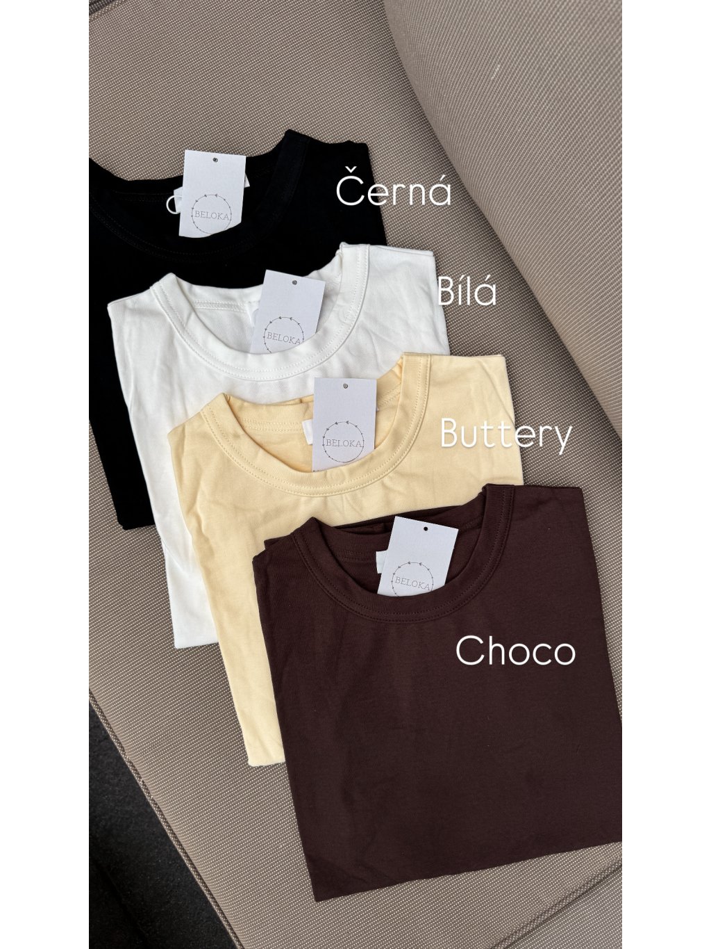 Klasické basic tričko z bavlny. Jednoduchý střih ke krku, hladký, neprůhledný materiál.
