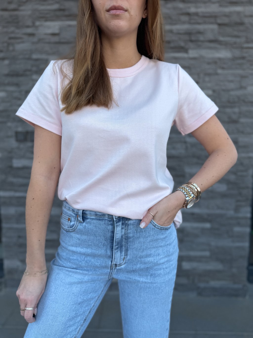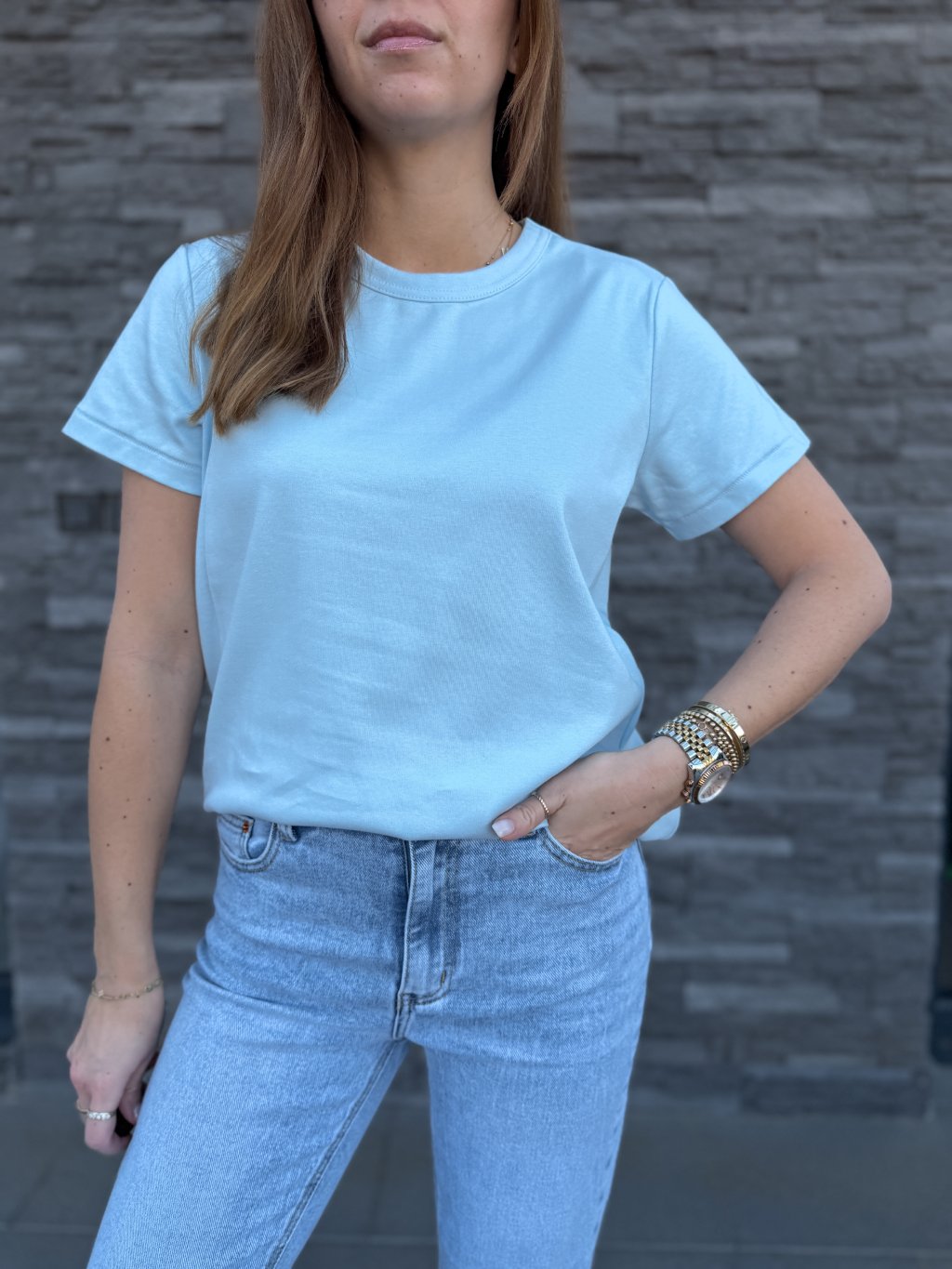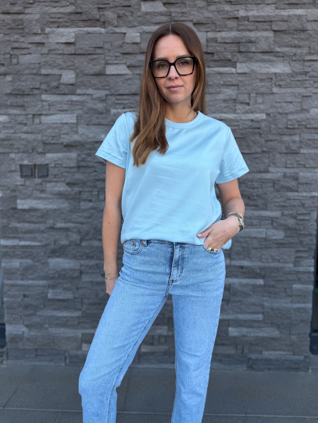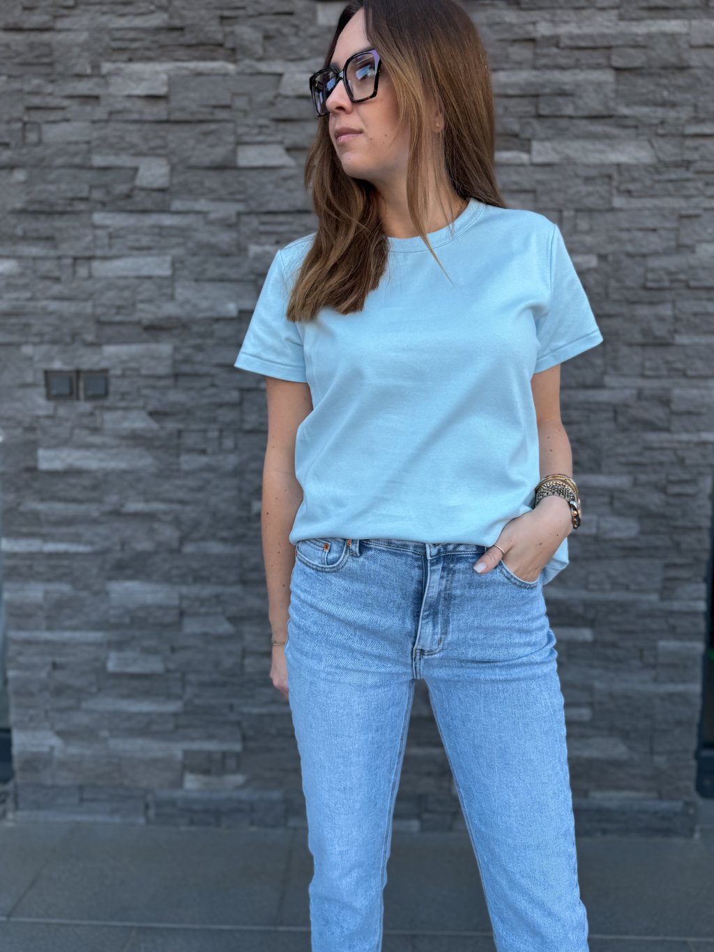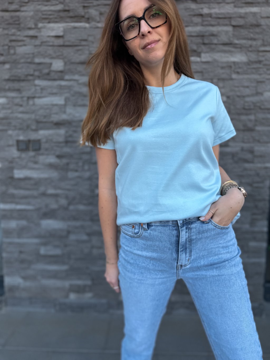 Klasické basic tričko z bavlny. Jednoduchý střih ke krku, hladký, neprůhledný materiál.