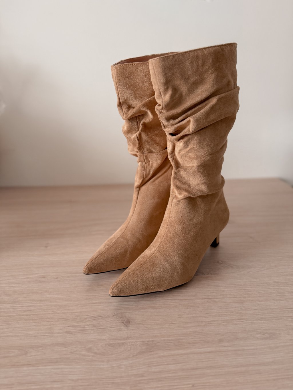 Stylové, béžové kozačky v krásné, tmavší béžové barvě.