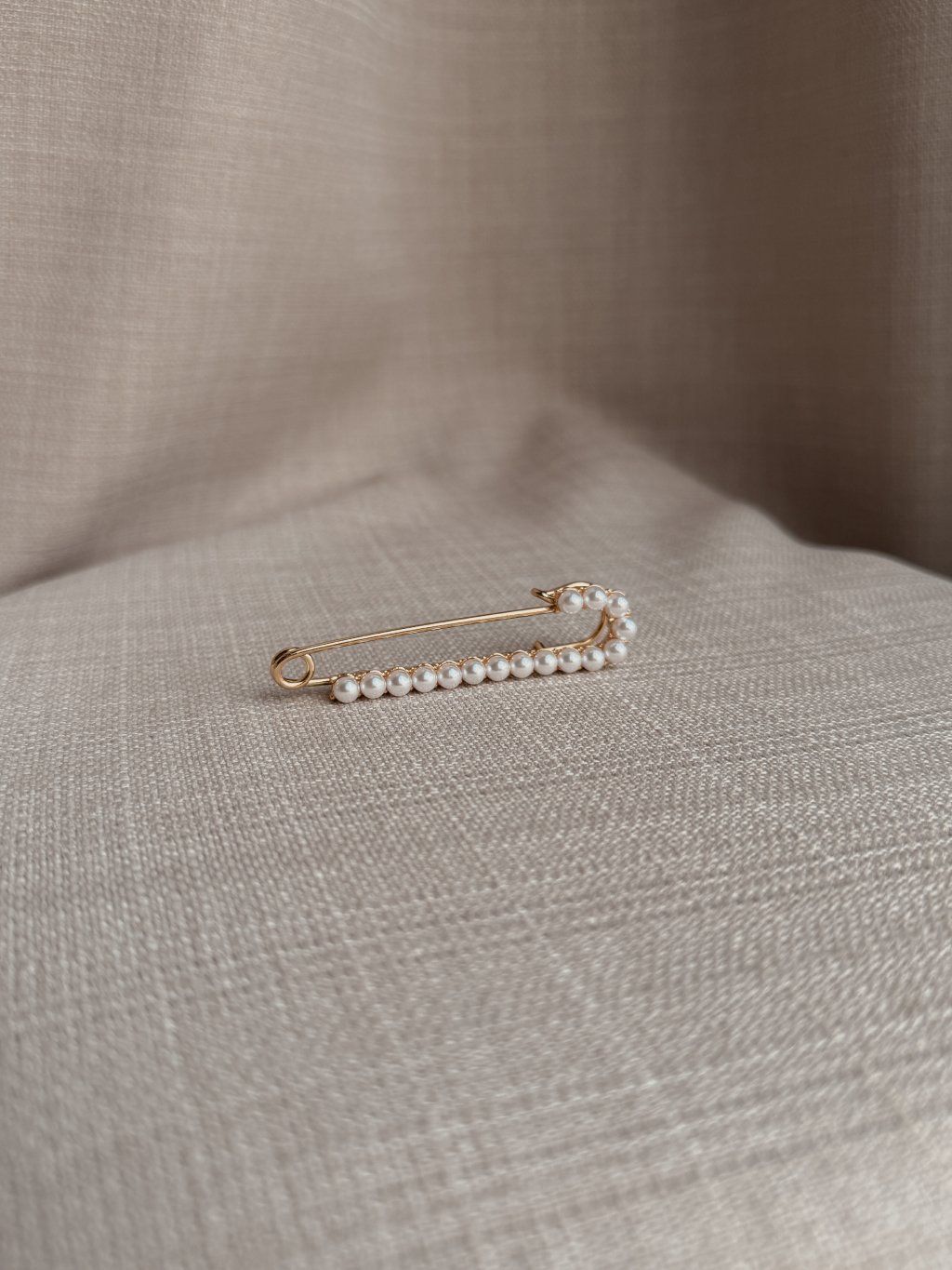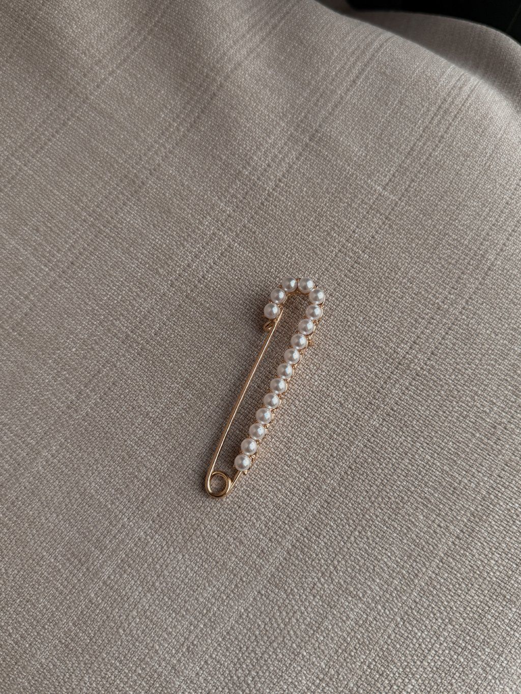 Decentní, zlatá brož s perličkami.