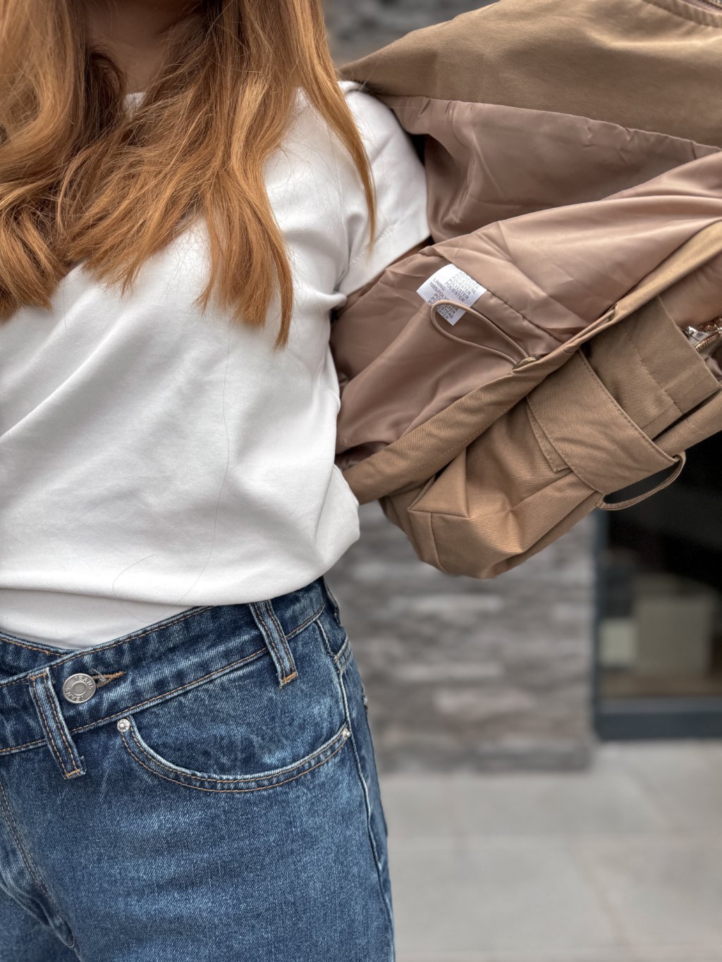Je podšitá, na bocích má skryté posuvné gumičky, kterými se dá bundička stáhnout v pase a přizpůsobit postavě.