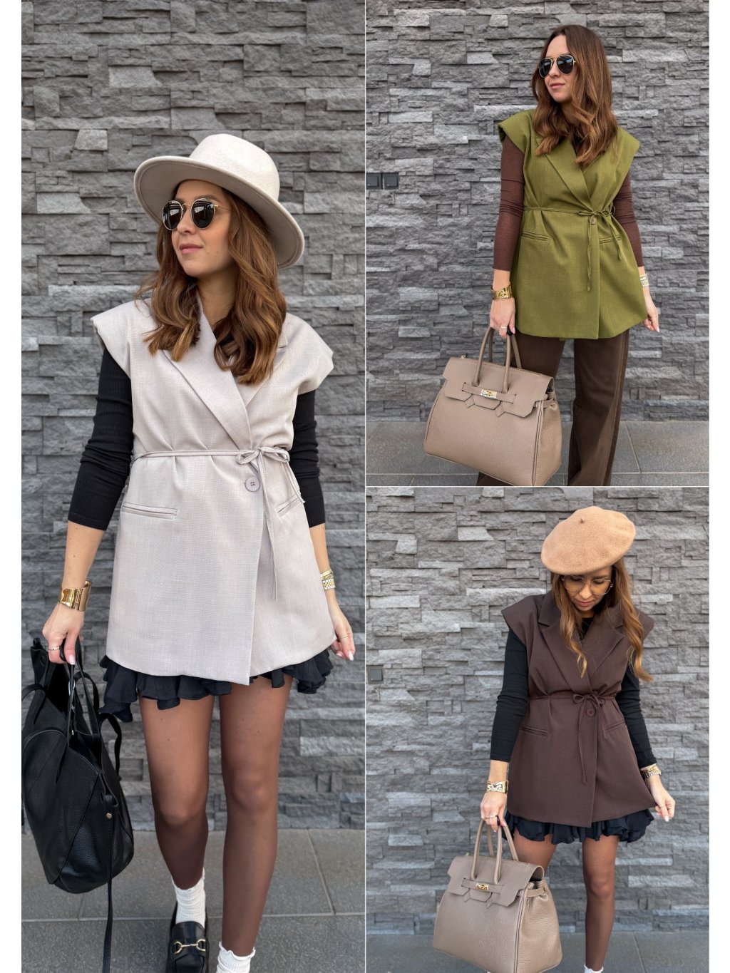 Delší, trendy vesta na zapínání na knoflík a pásek v pase.