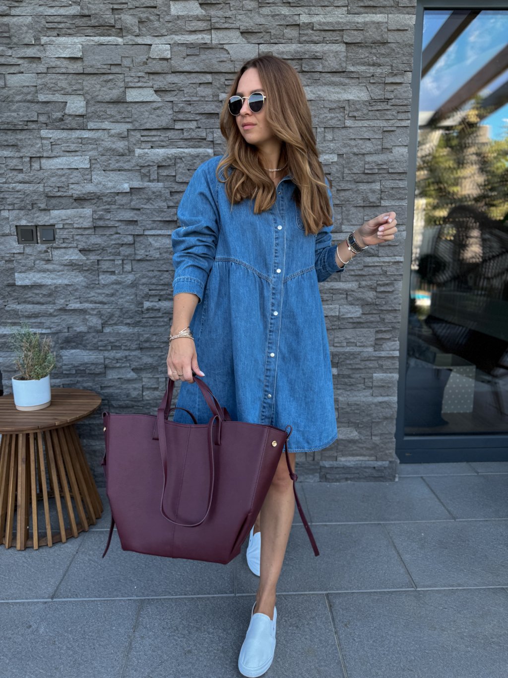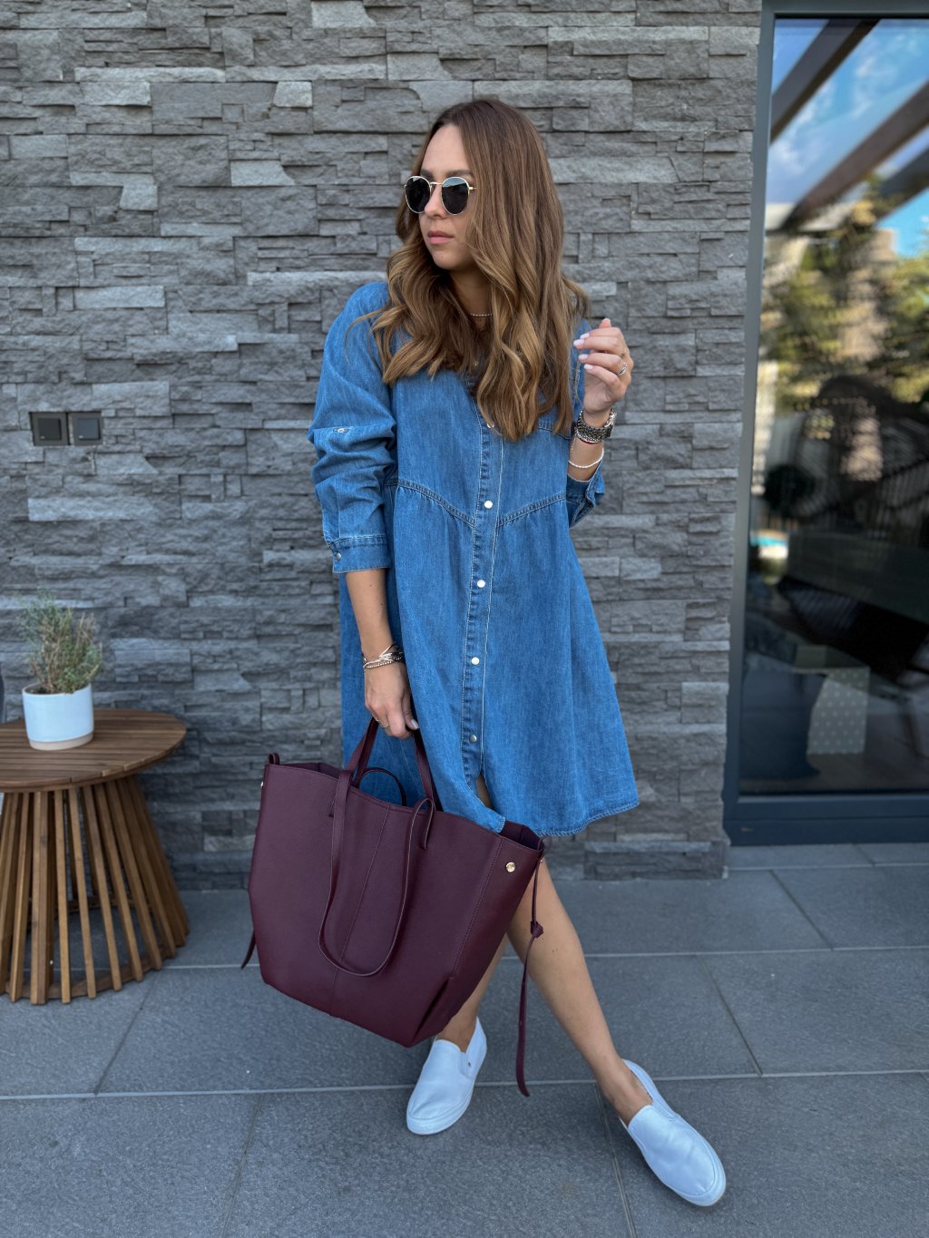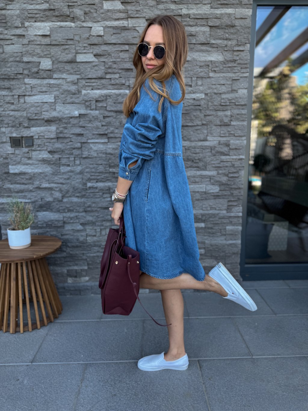 Kvalitní, denimové šaty s dlouhým rukávem, který je roll up (dá se ohrnout a zapnout cvočkem).