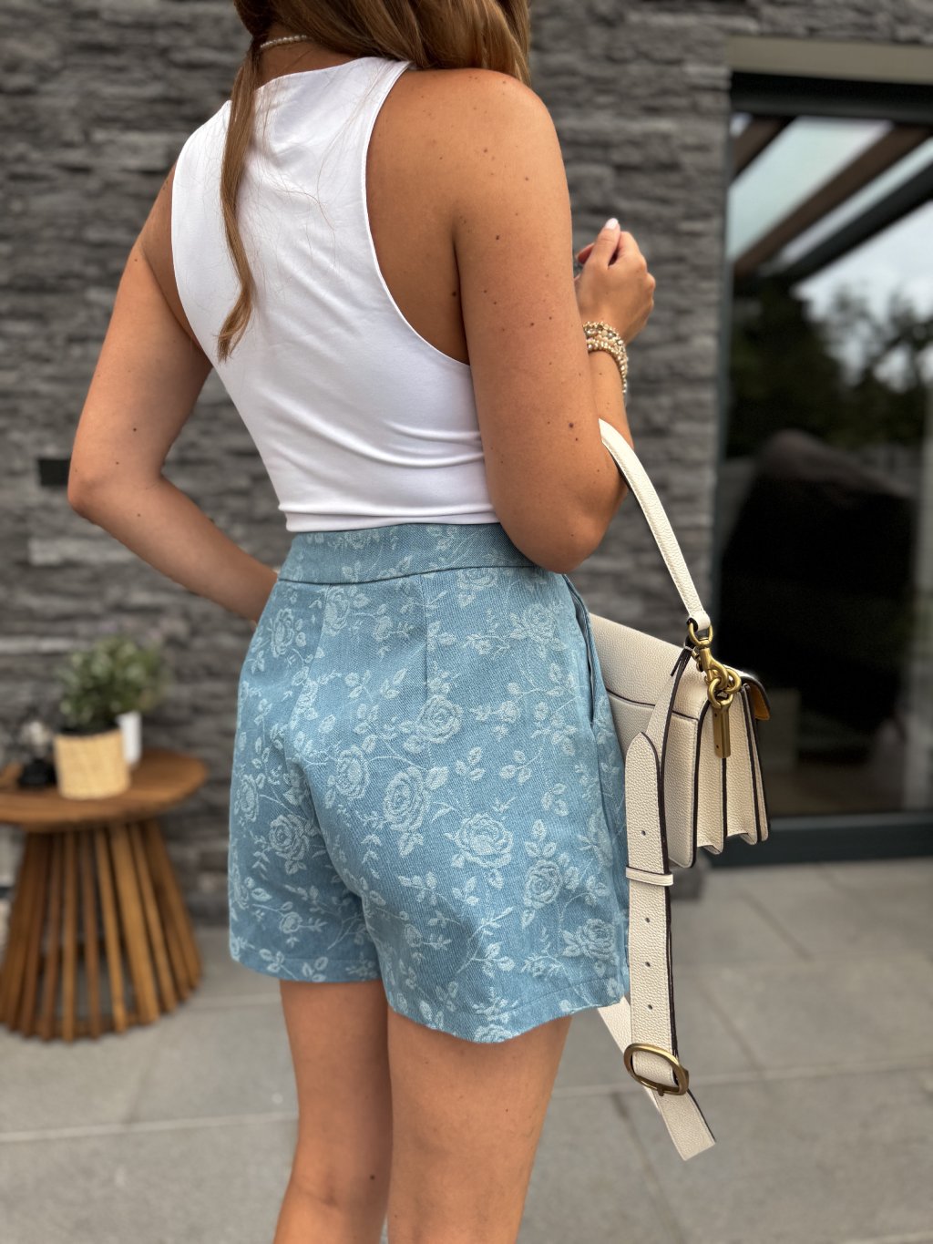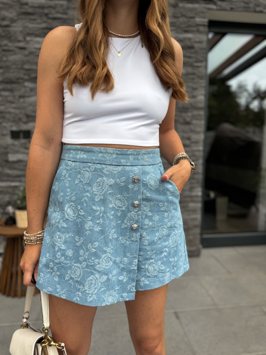 Džínový květovaný skort