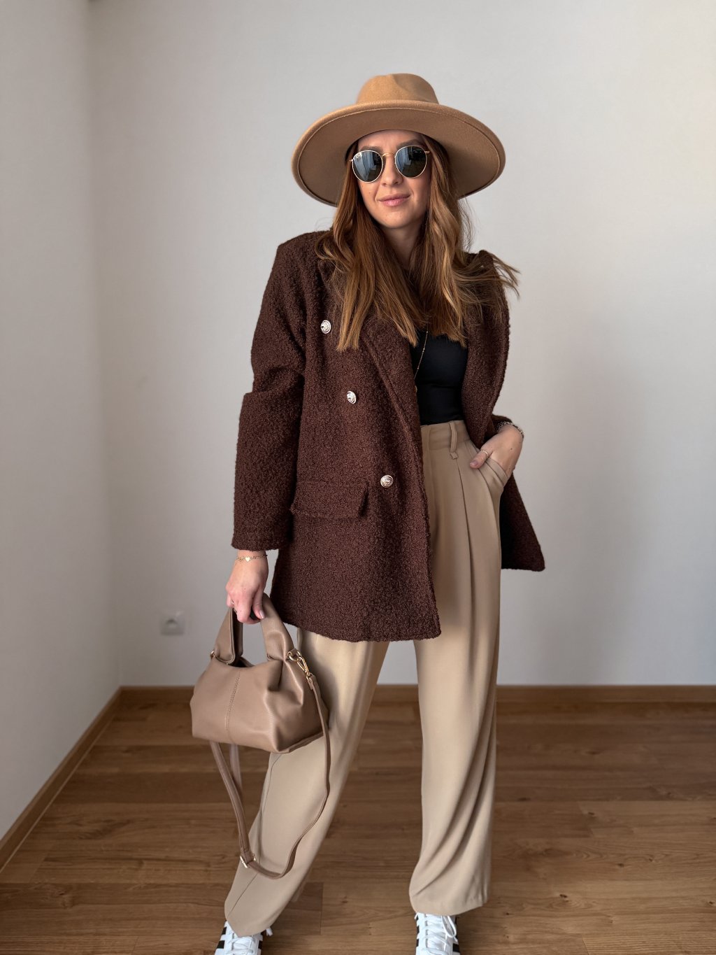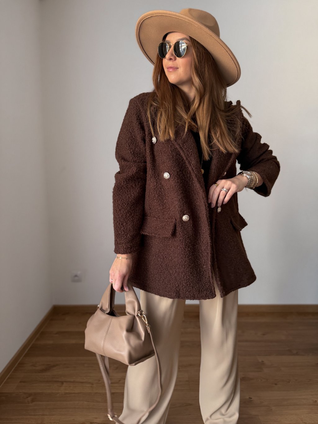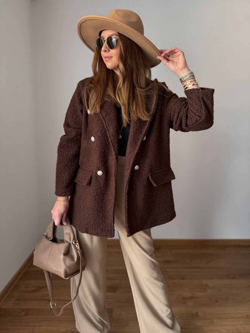 Krásný, hrubší blazer. Velmi hřejivý a příjemný. Není podšitý.