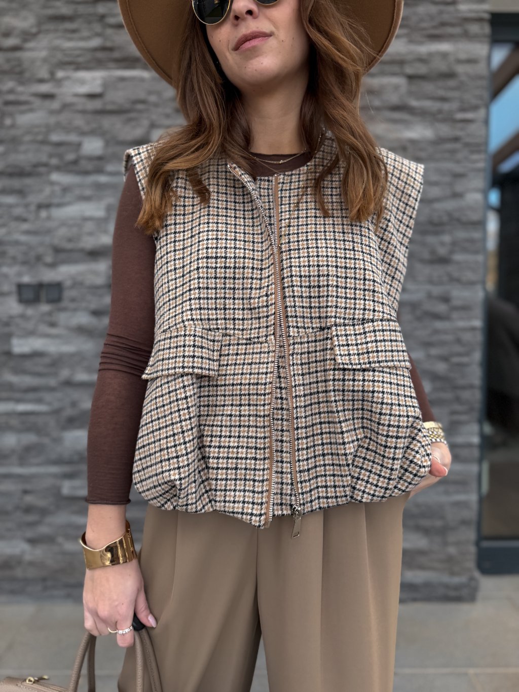 Naprosto božská, károvaná vestička. Propracovaný střih.