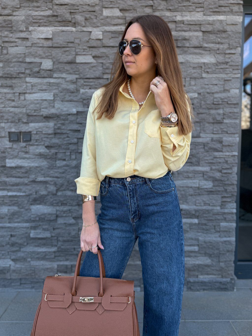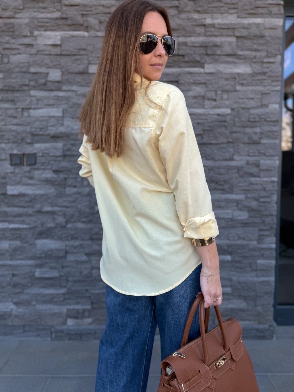 Nadčasová, kvalitní košile. Perfektní střih s kulatým, spodním lemem.