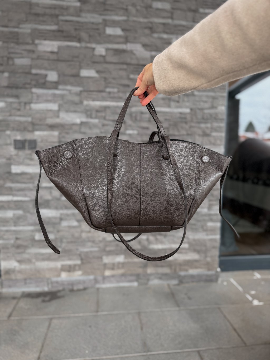 Čistý, minimalistický vzhled, hladká kůže, drží krásně tvar.