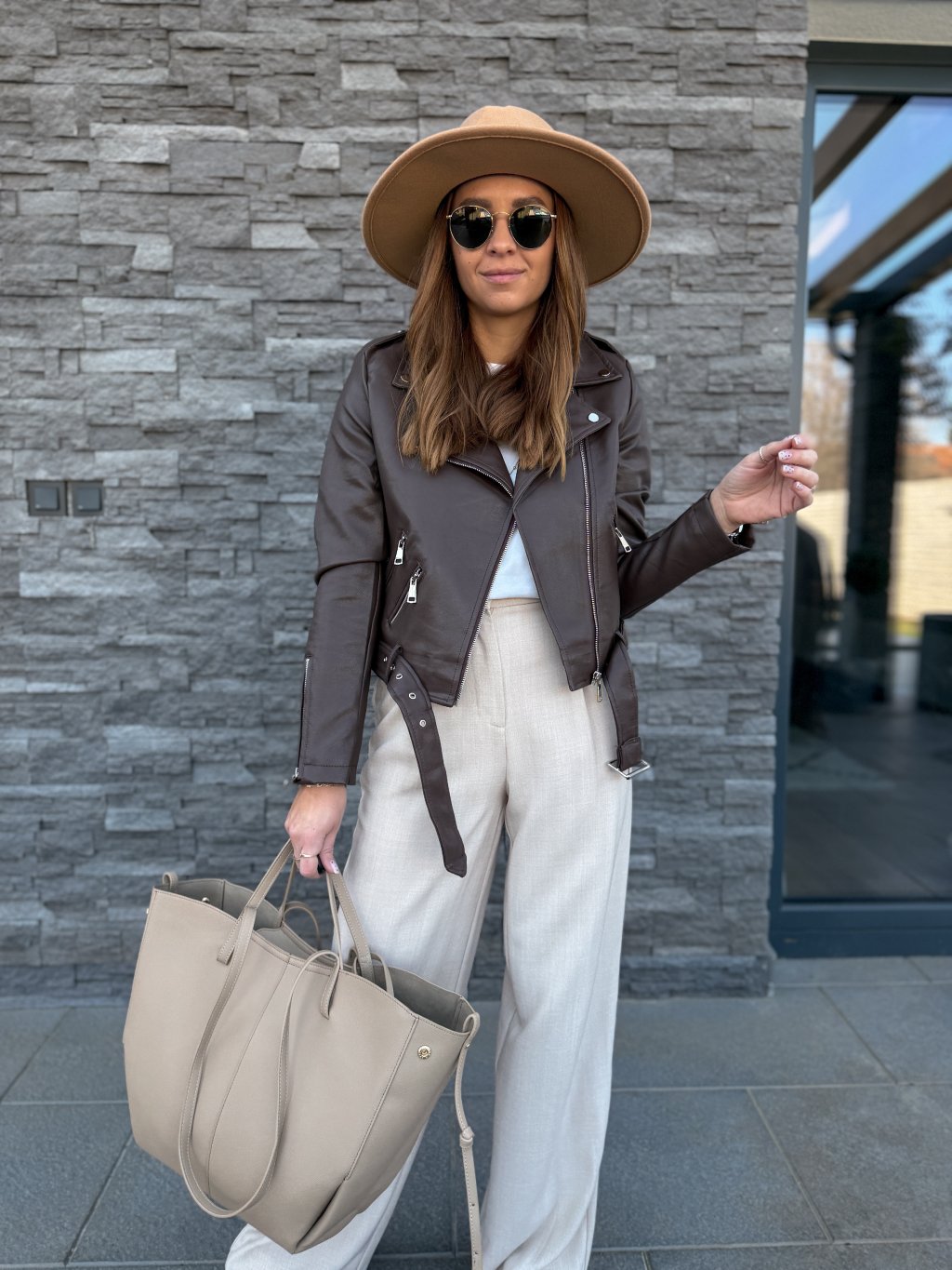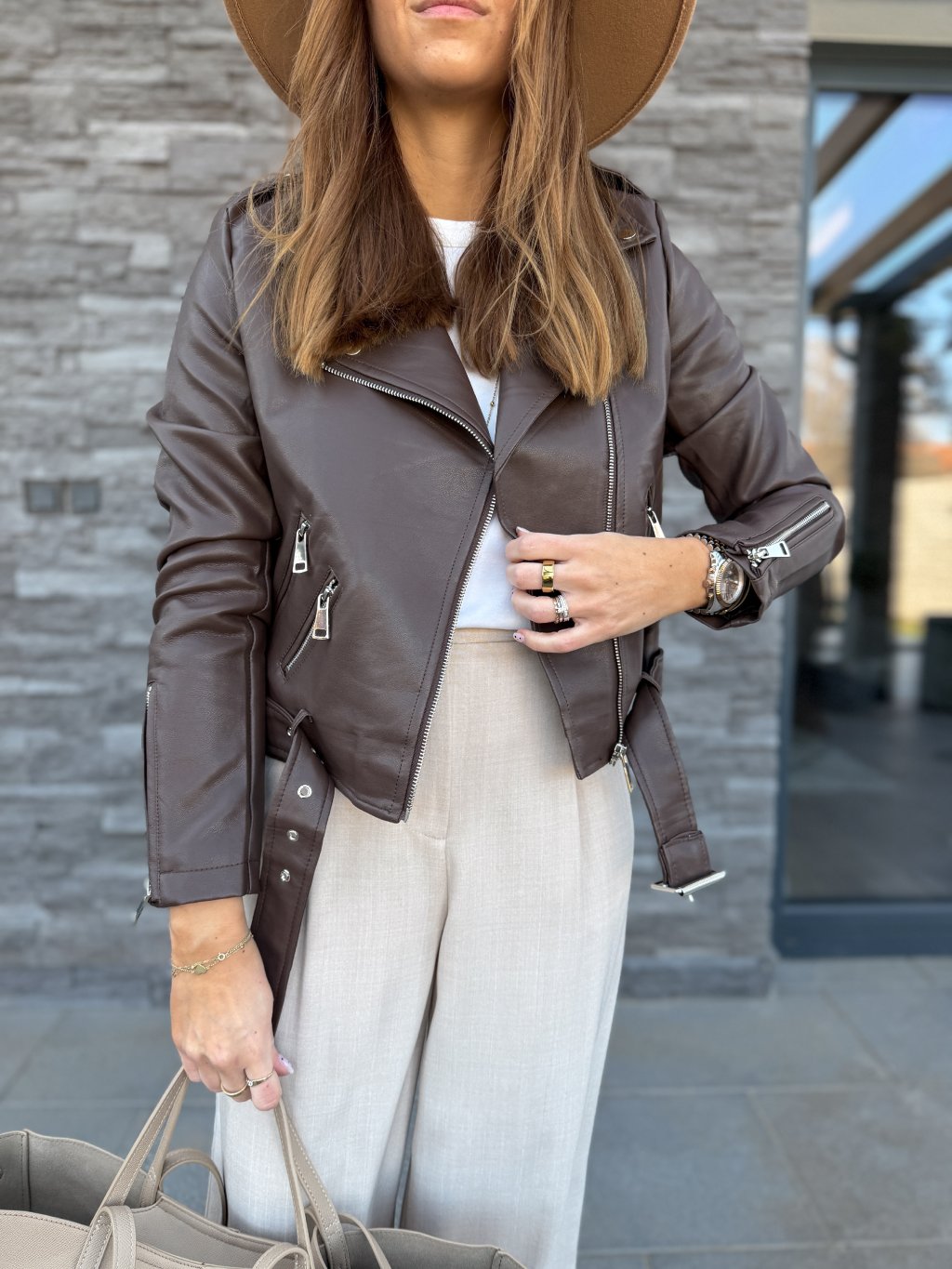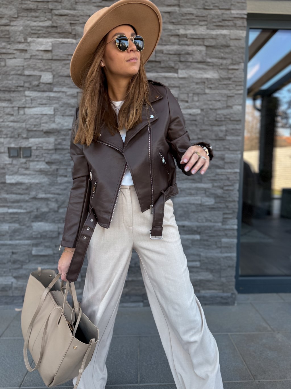 Perfektně padnoucí koženkový křivák, jednoduchý střih, který sluší každému.