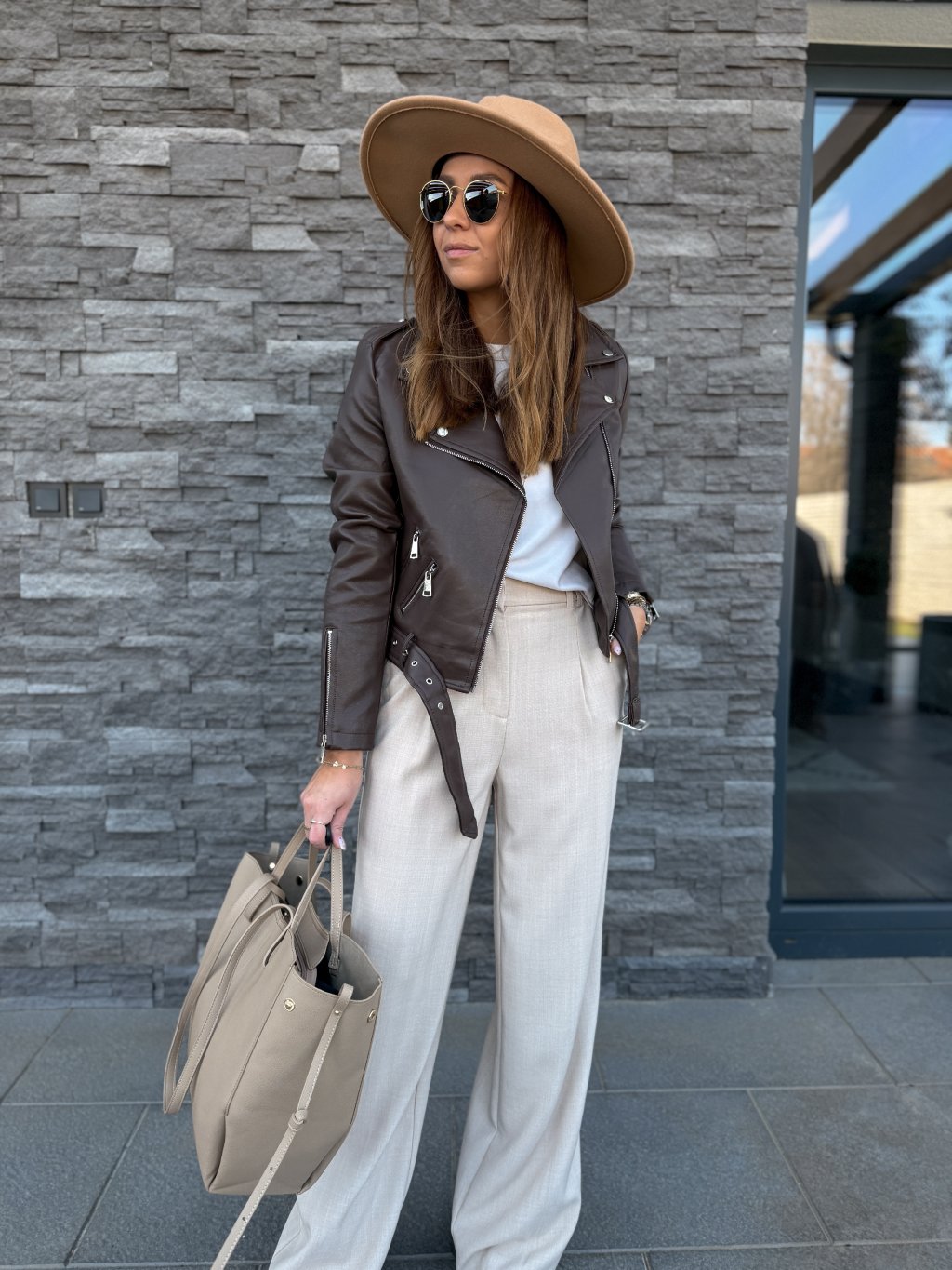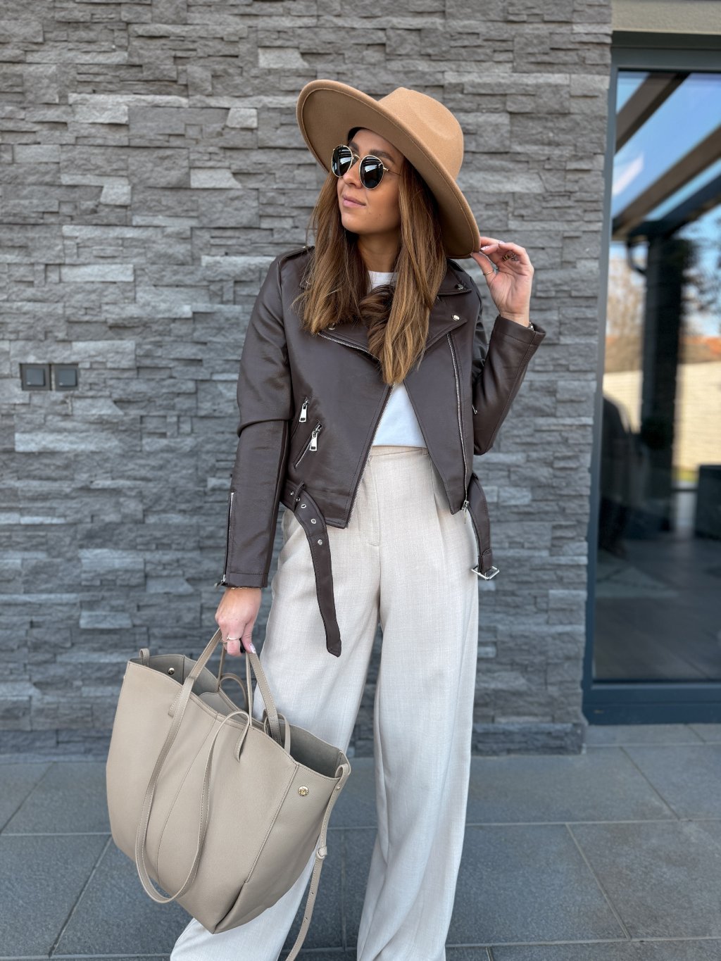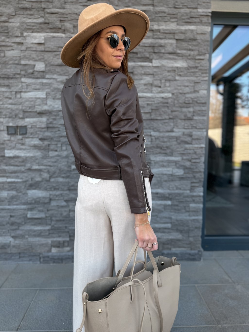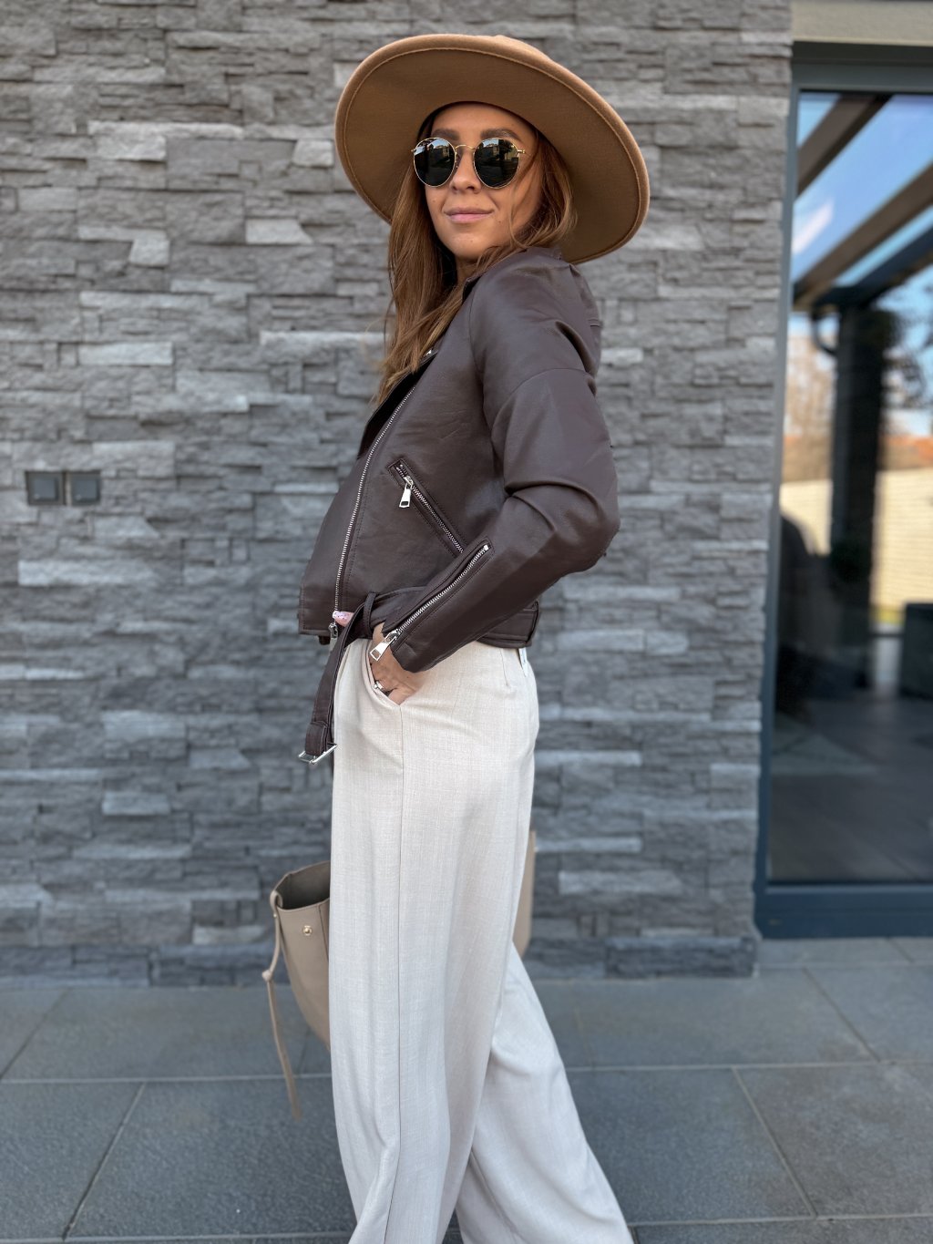 Perfektně padnoucí koženkový křivák, jednoduchý střih, který sluší každému.