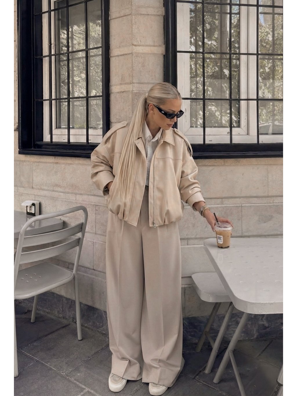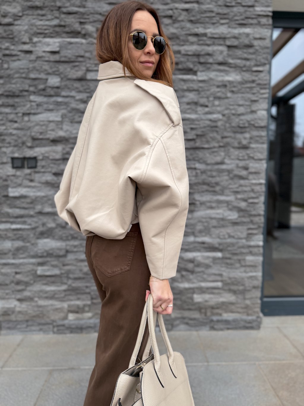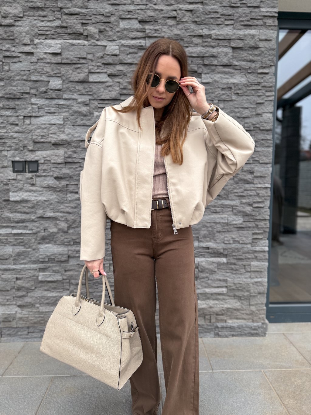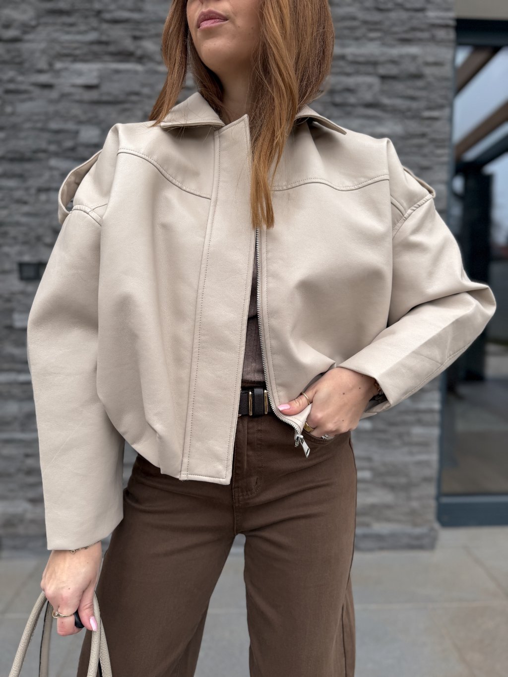 Koženkový bomber BEIGE