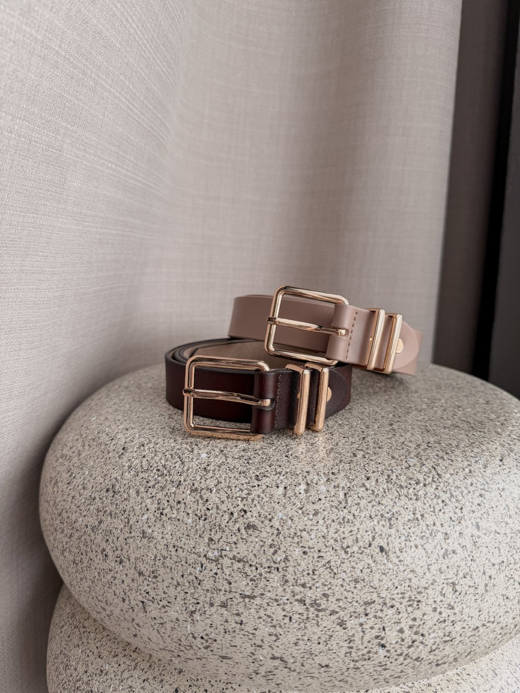 Nadčasový, kožený pásek. Luxusní, zlaté detaily na sponě.