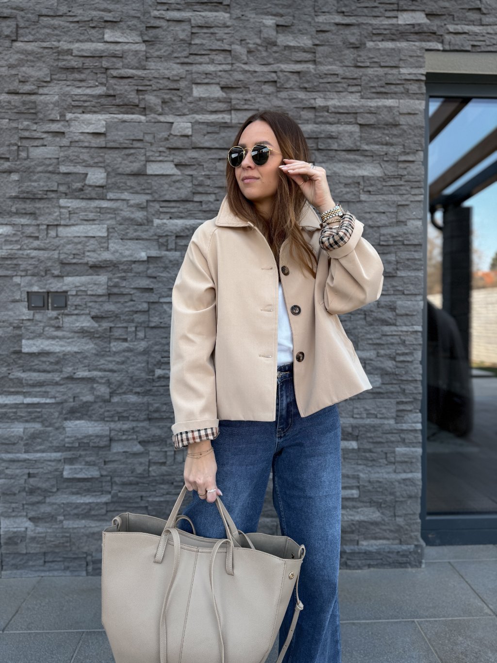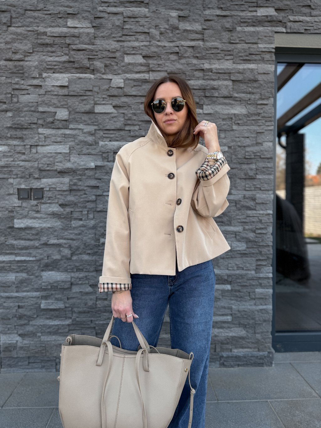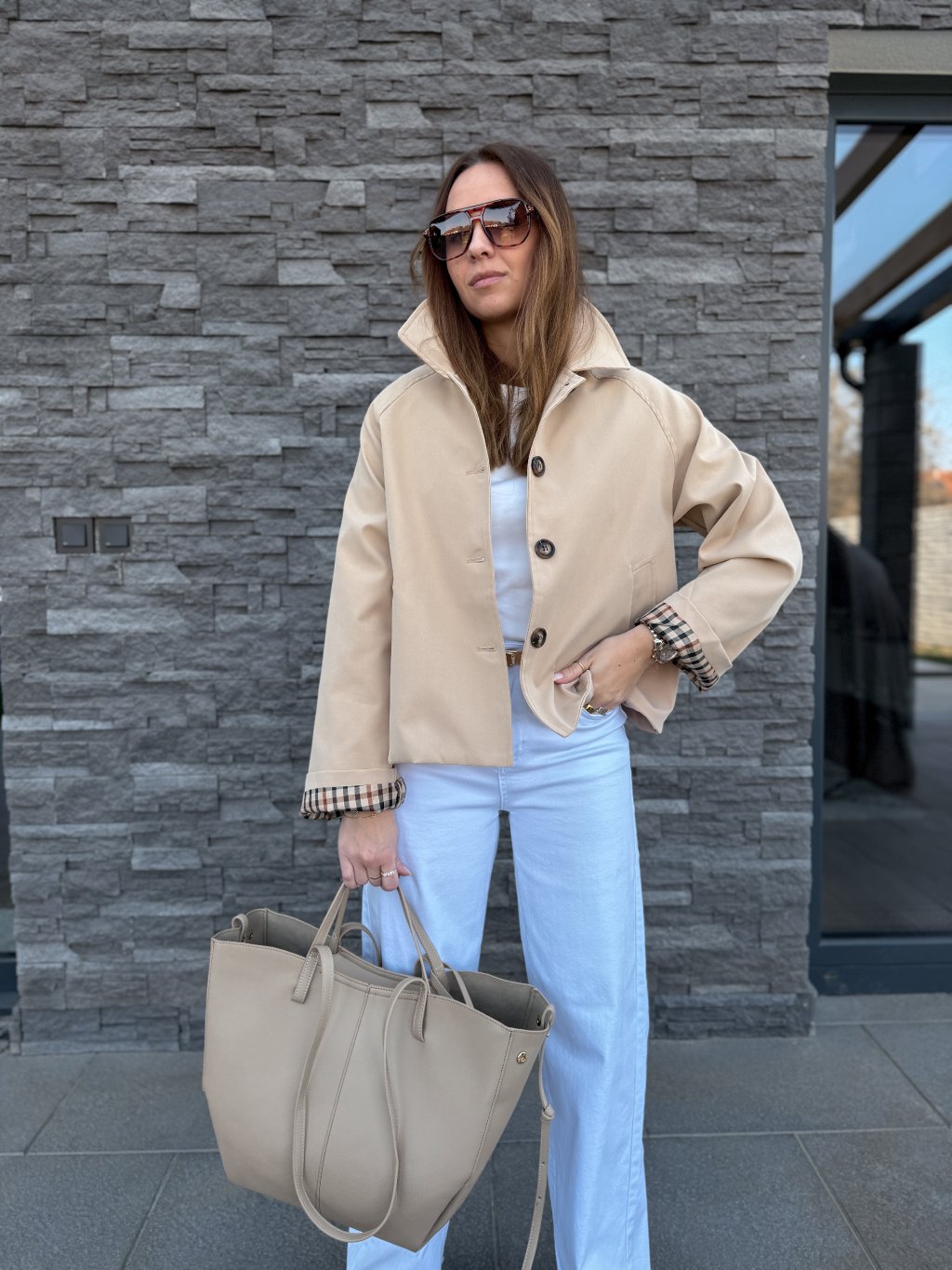 - Nádherný, nadčasový trenčkot ve světle béžové barvě.