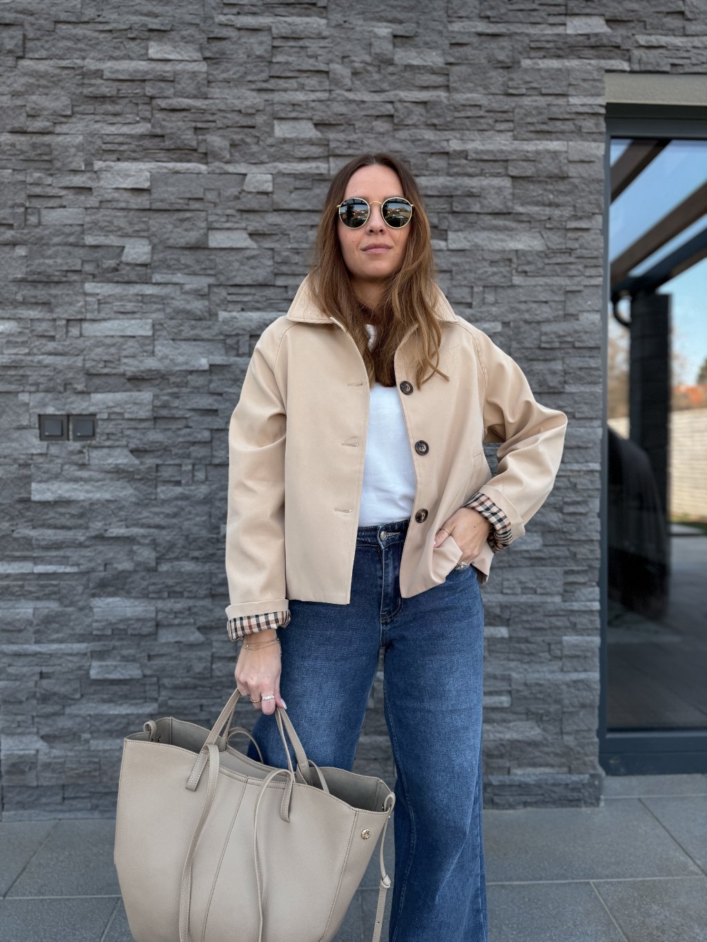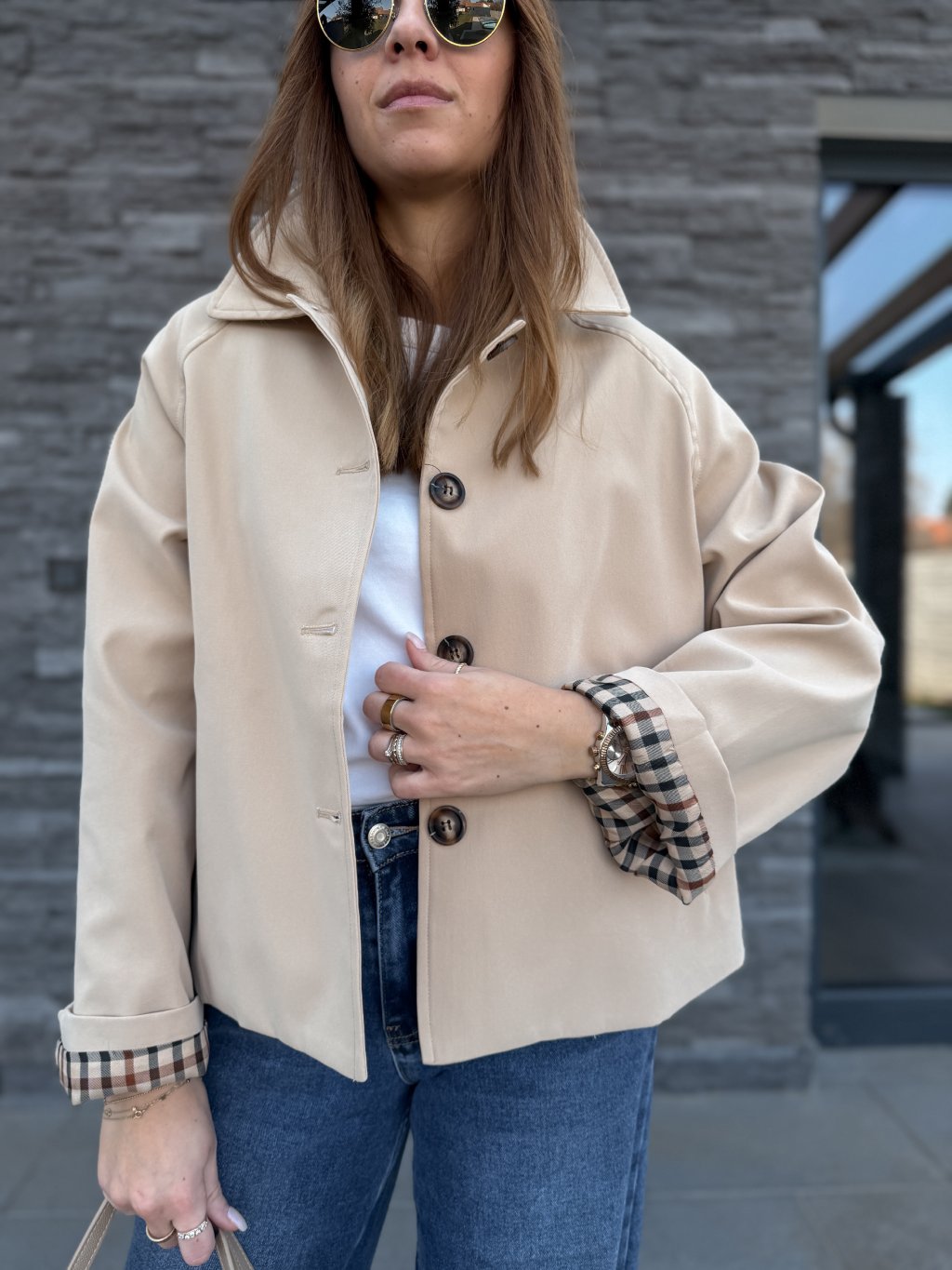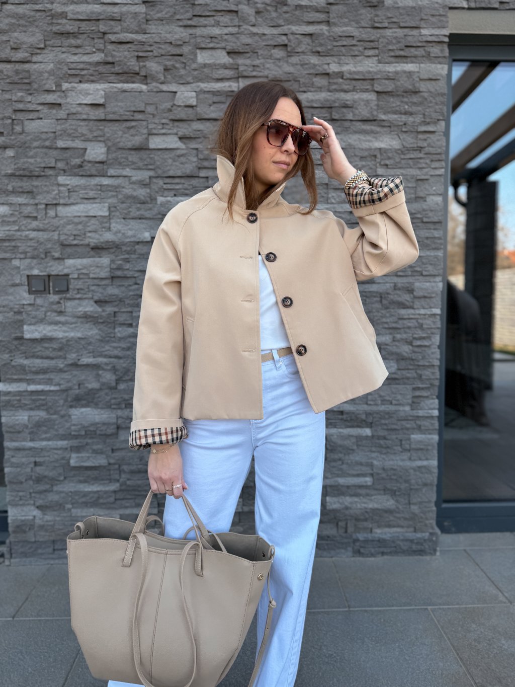 - Nádherný, nadčasový trenčkot ve světle béžové barvě.