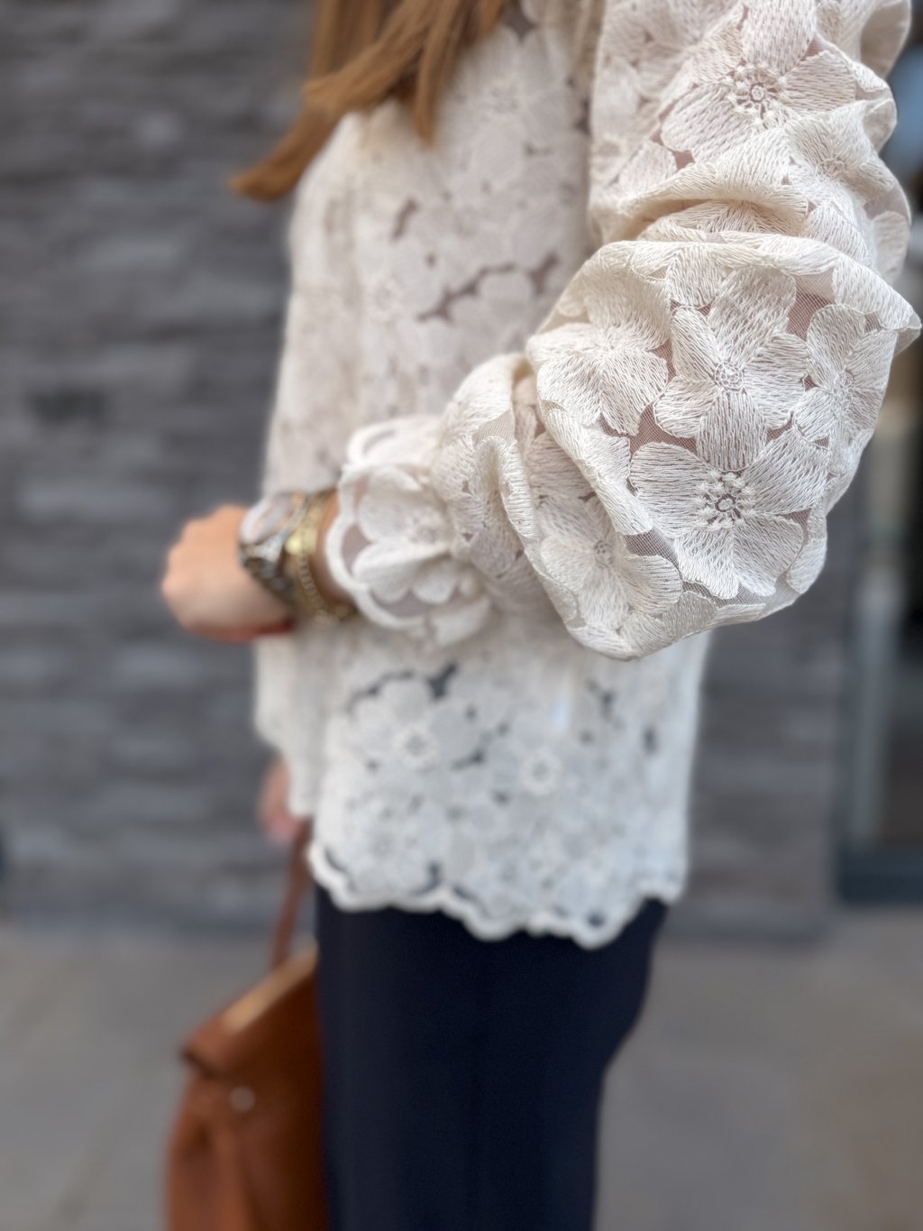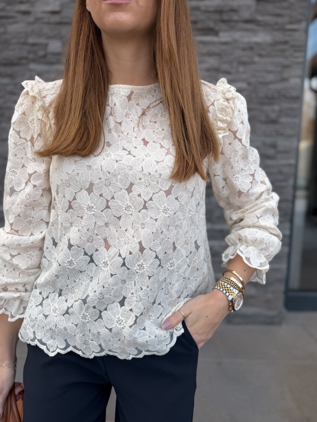 Nádherný, bavlněný top s propracovanými aplikacemi květin.