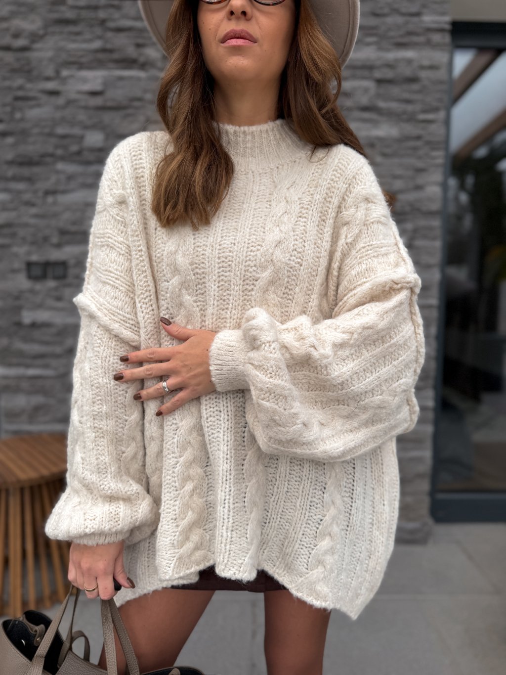 Extra teplý, huňatý svetr. Velmi měkkoučký, oversized stříh - rukávy zakončené gumičkou.