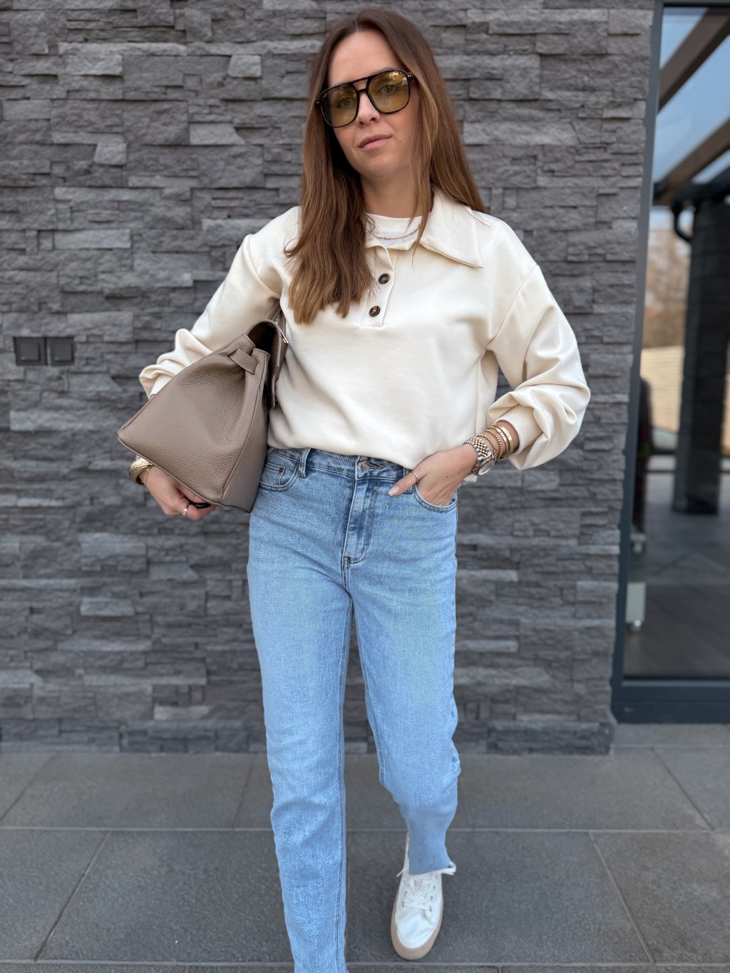 Krásná, lehounká mikina v trendy střihu s límečkem.