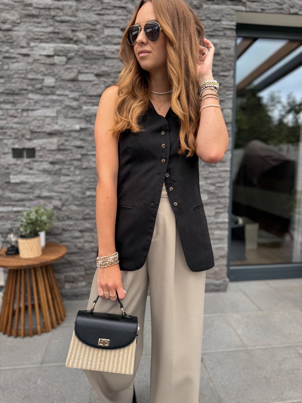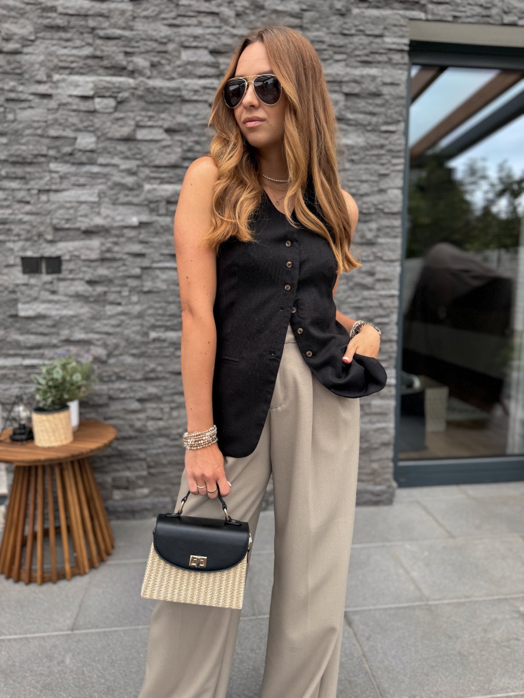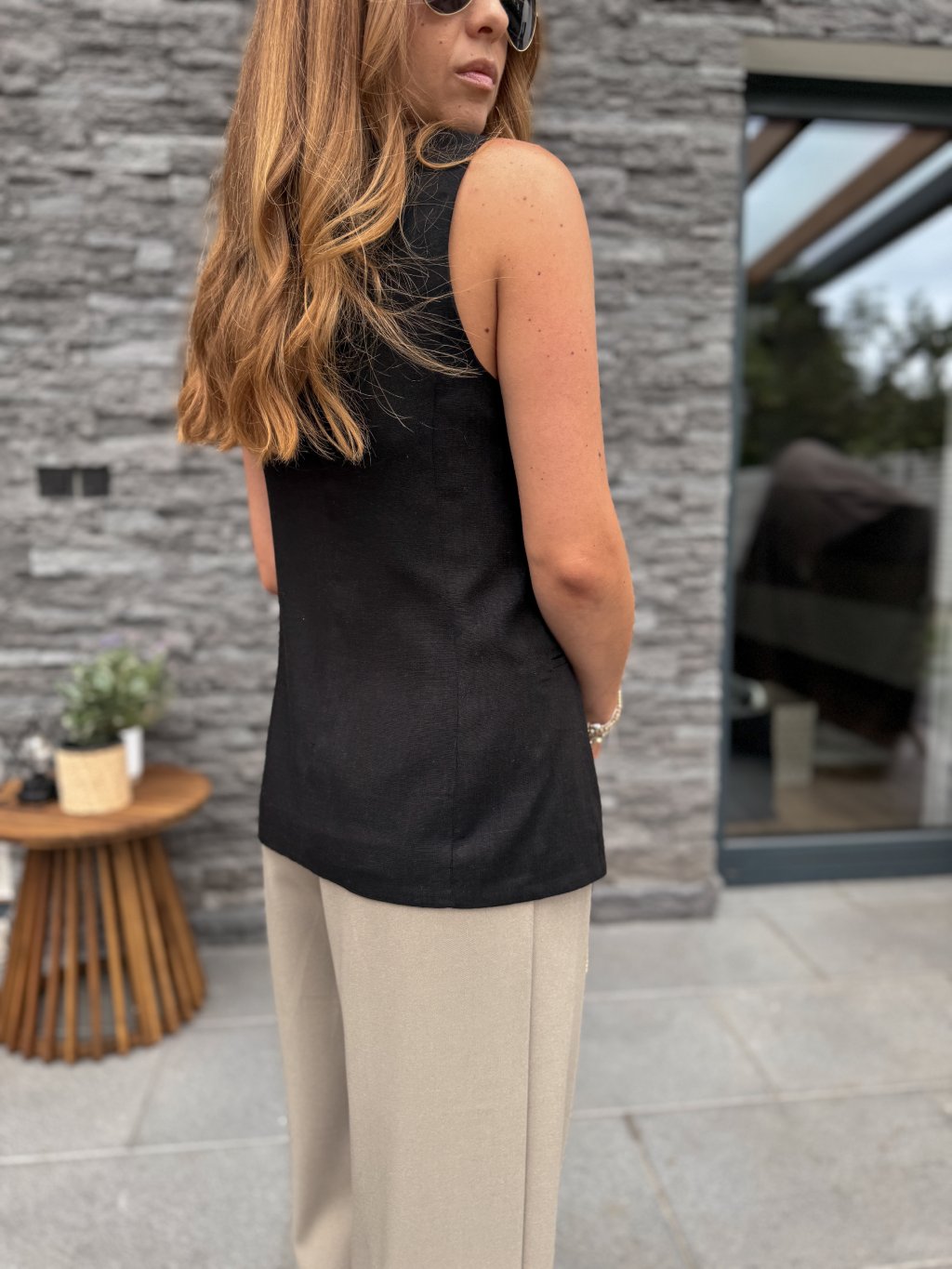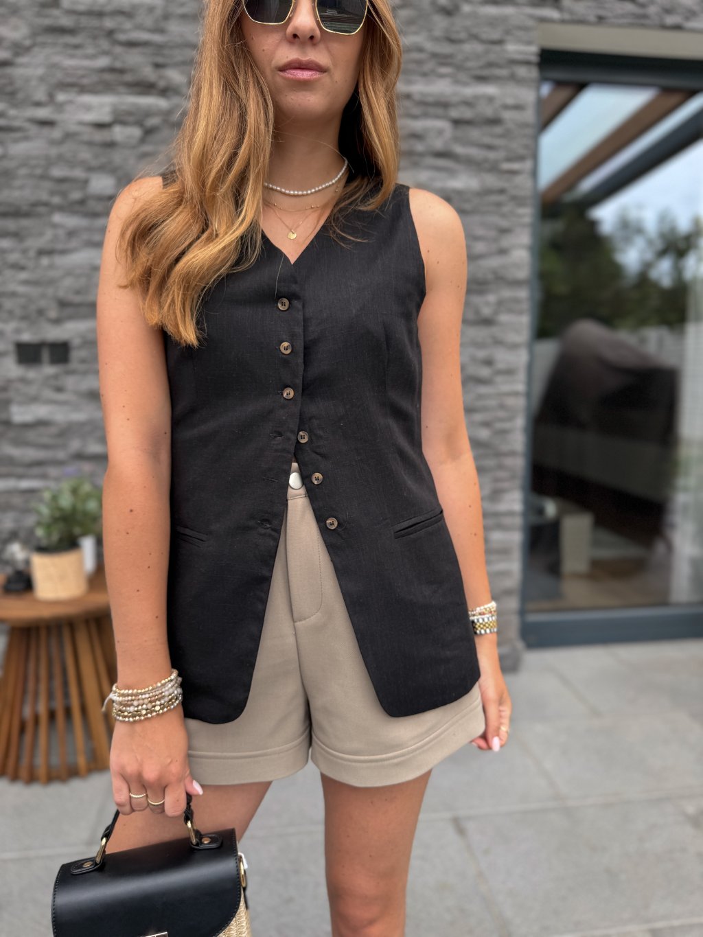 Vypasovaná, lněná, vesta. Nadčasový a chic kousek do šatníku.