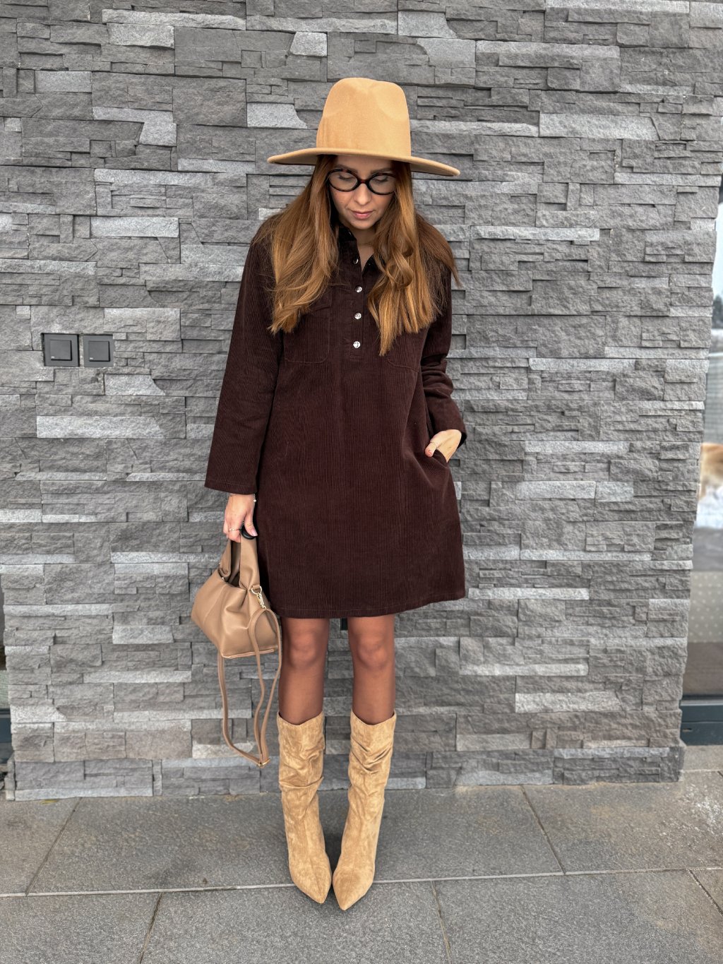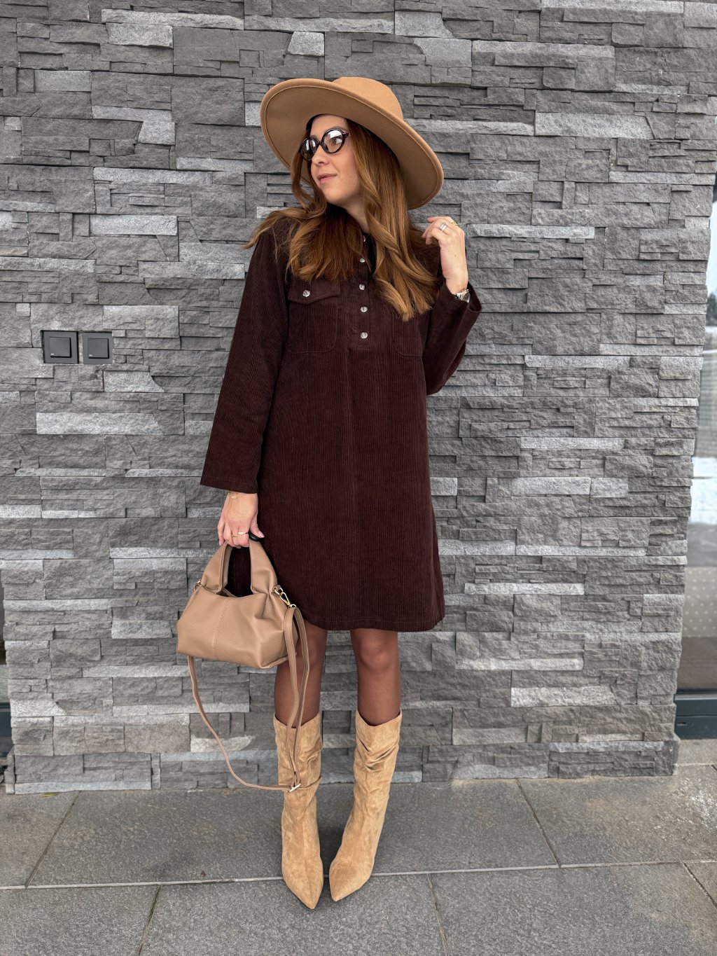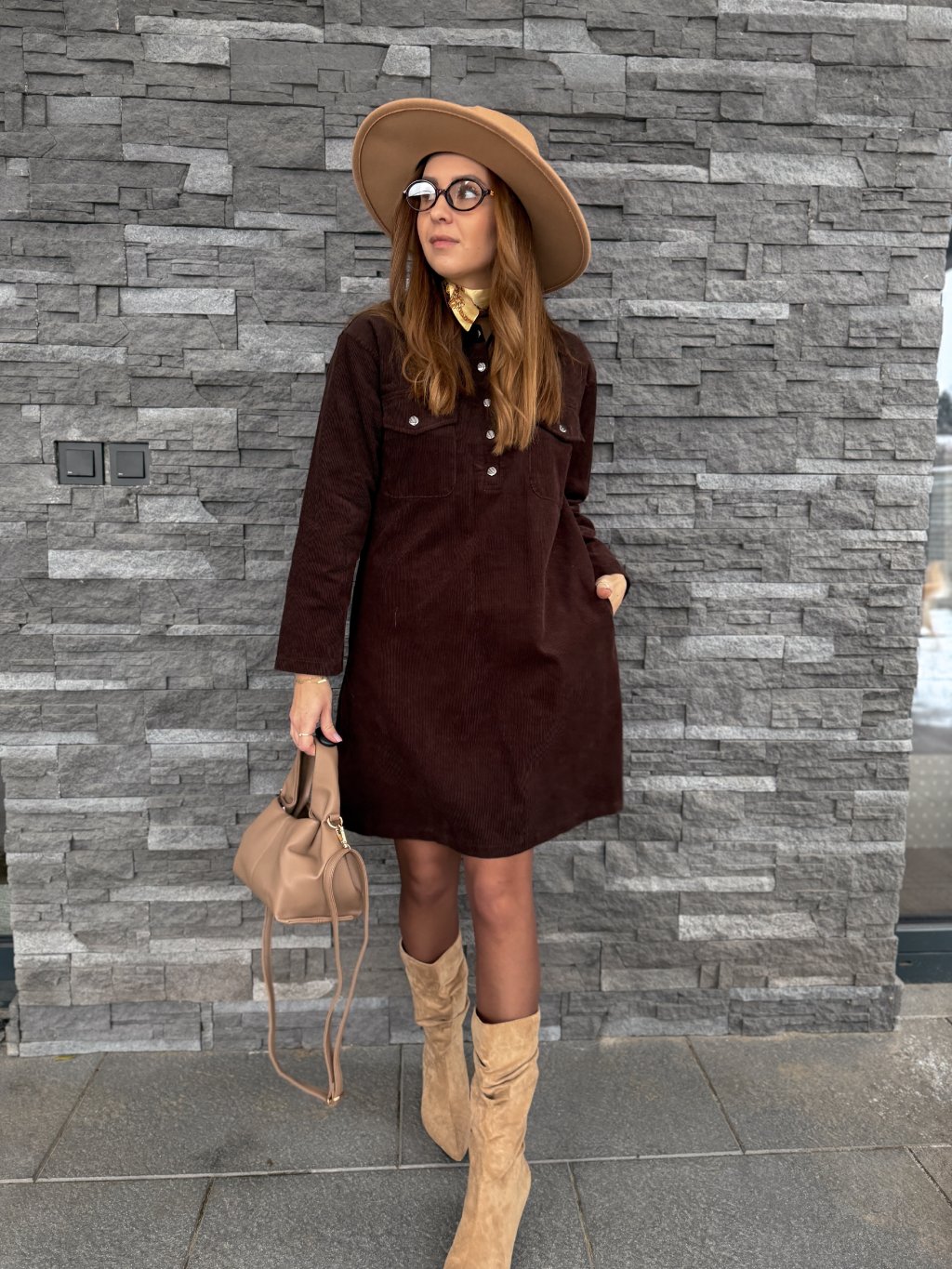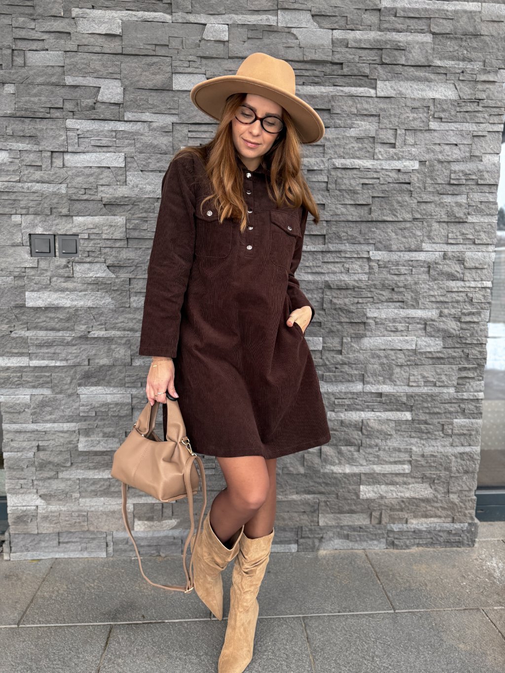 Manšestrové šaty STRONG BROWN