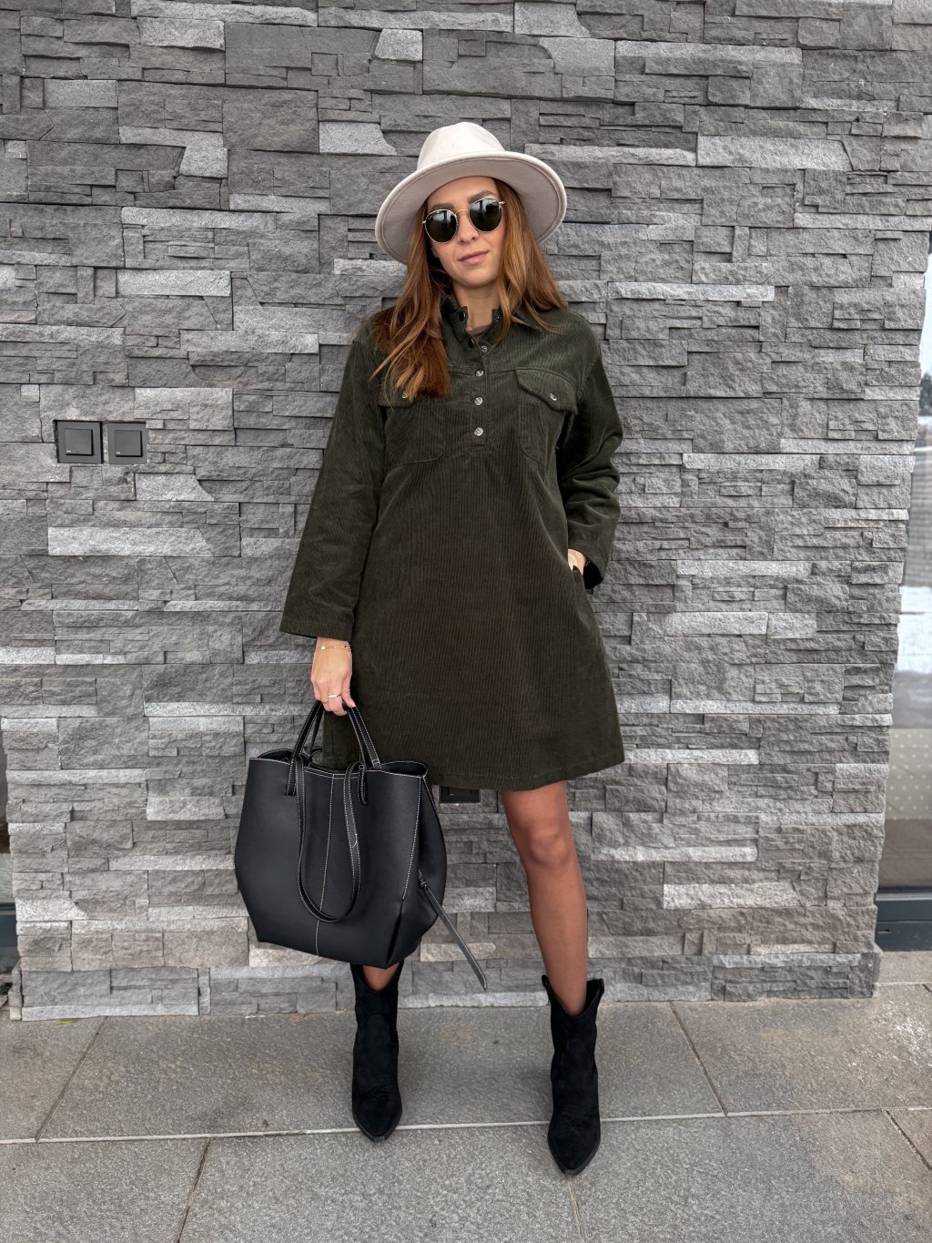 Kvalitní, šaty ze silnější manšestrové látky s dlouhým rukávem.