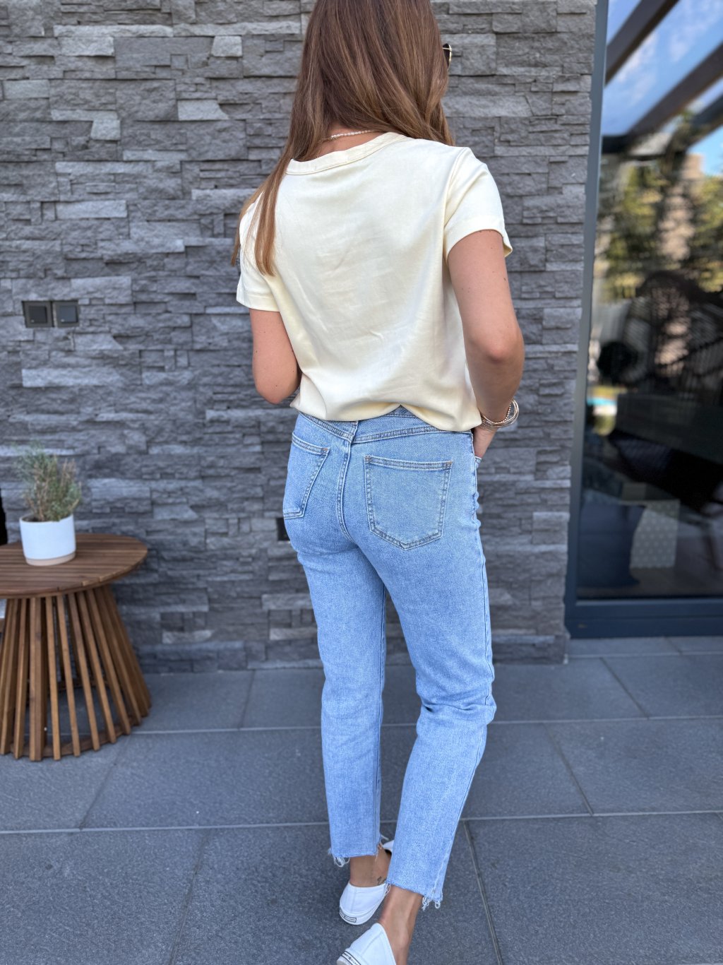 Nezačištěné dolní lemy dodají džínům casual nádech.