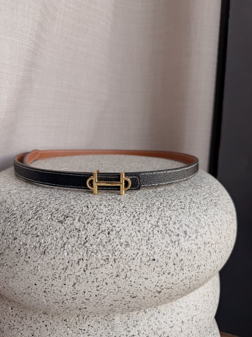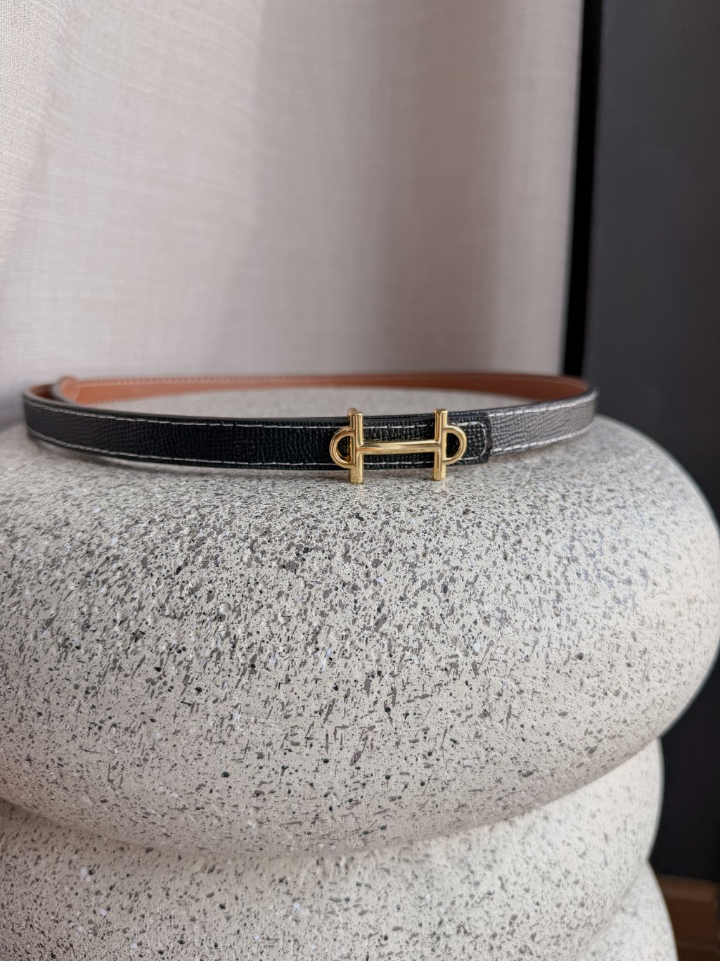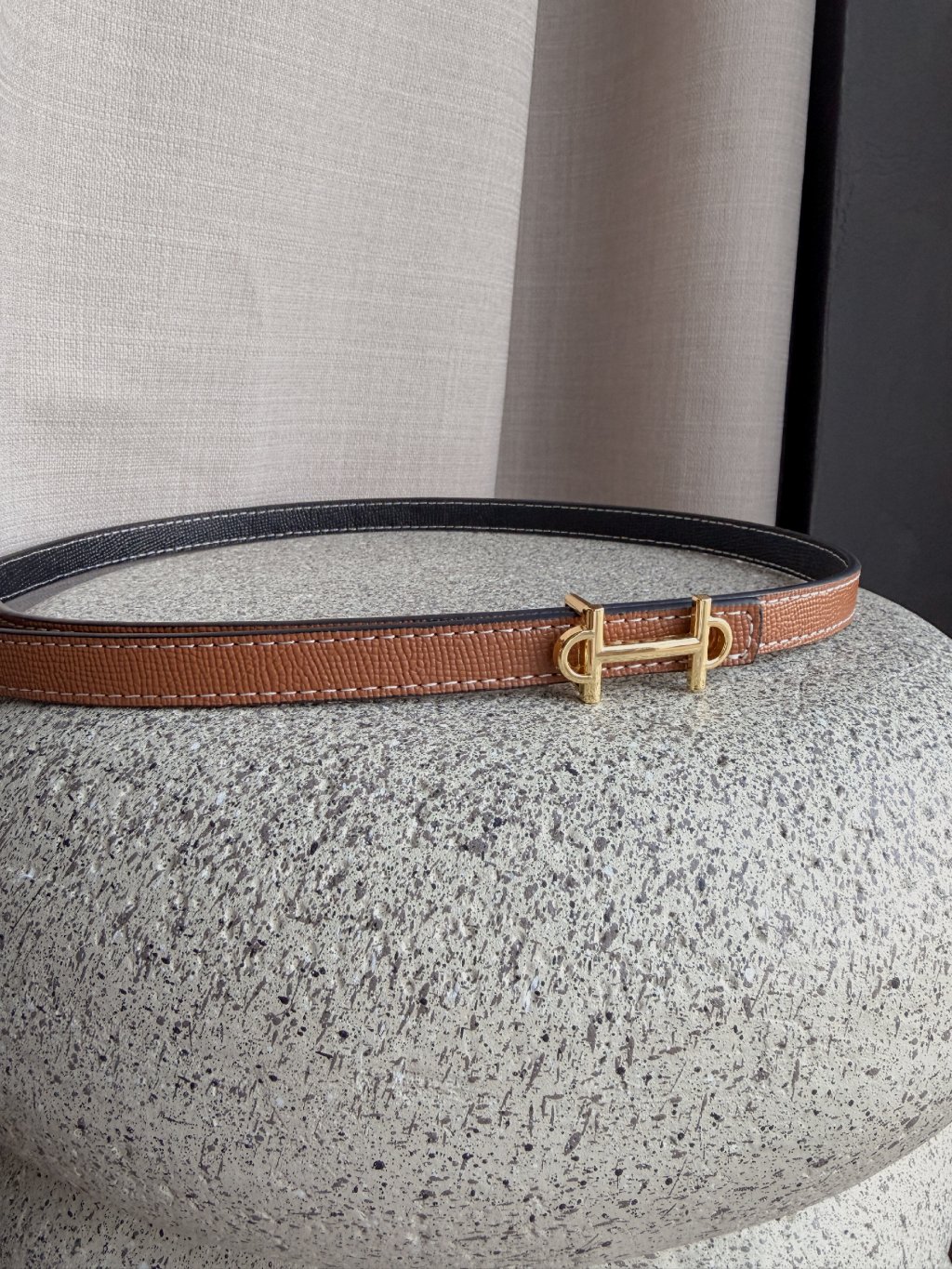 Hodí se do kalhot i do pasu na šaty. Prošívání bílou nití dělá tento pásek velmi luxusním.