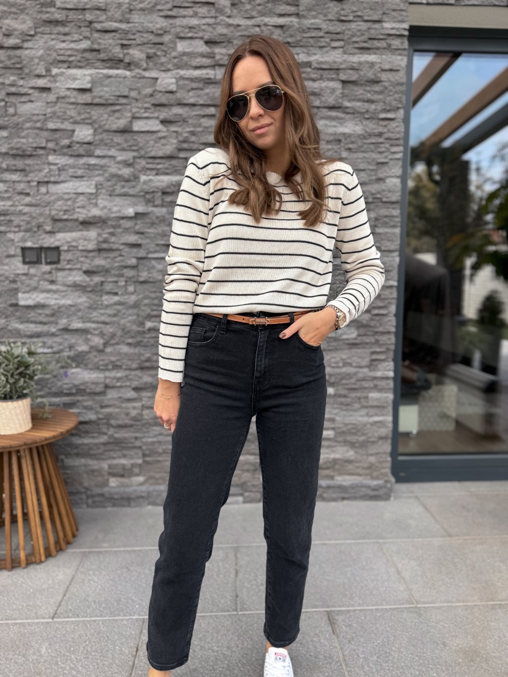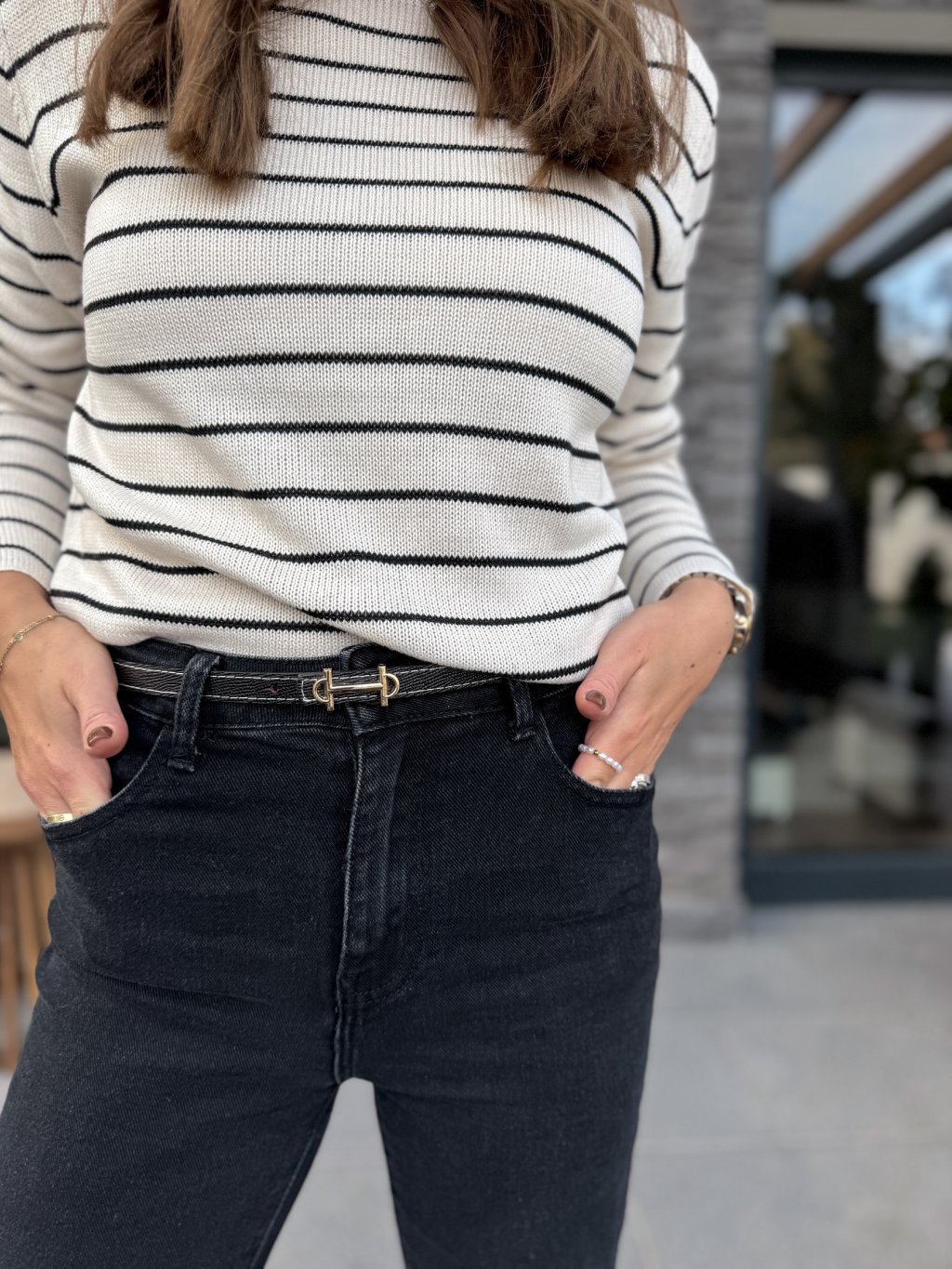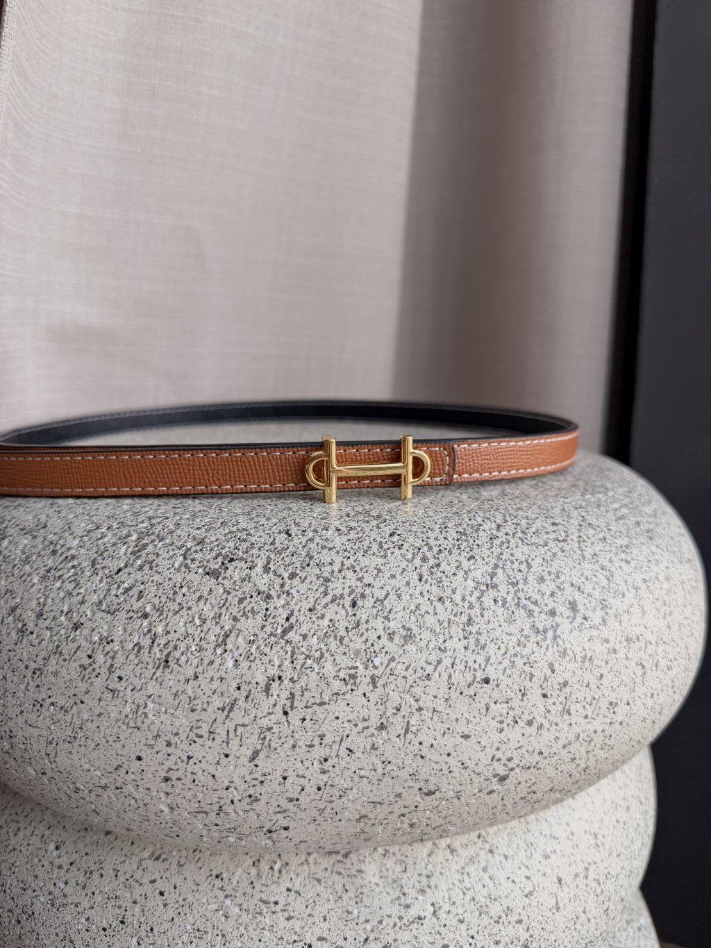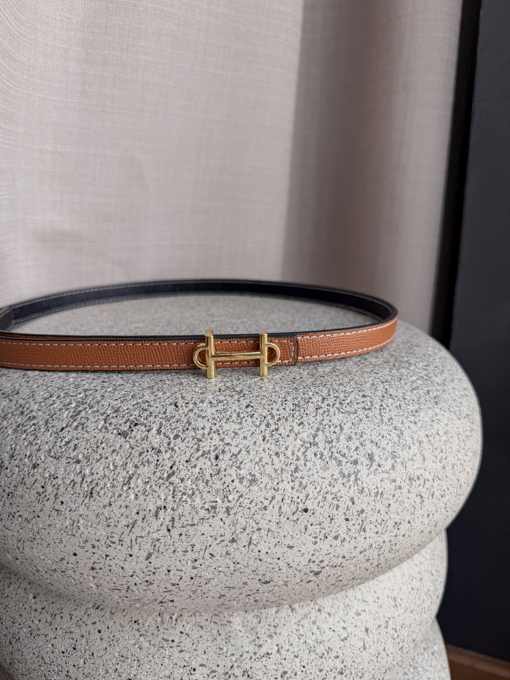 Hodí se do kalhot i do pasu na šaty. Prošívání bílou nití dělá tento pásek velmi luxusním.