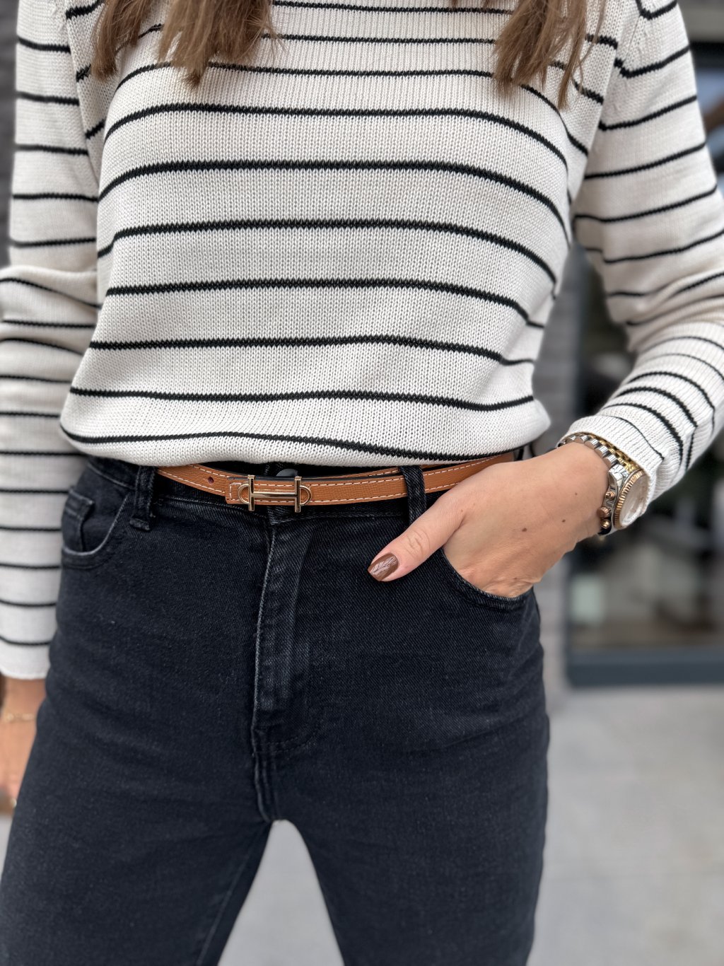 Nadčasový, kožený pásek. Jemně zlatá, minimalistická spona.