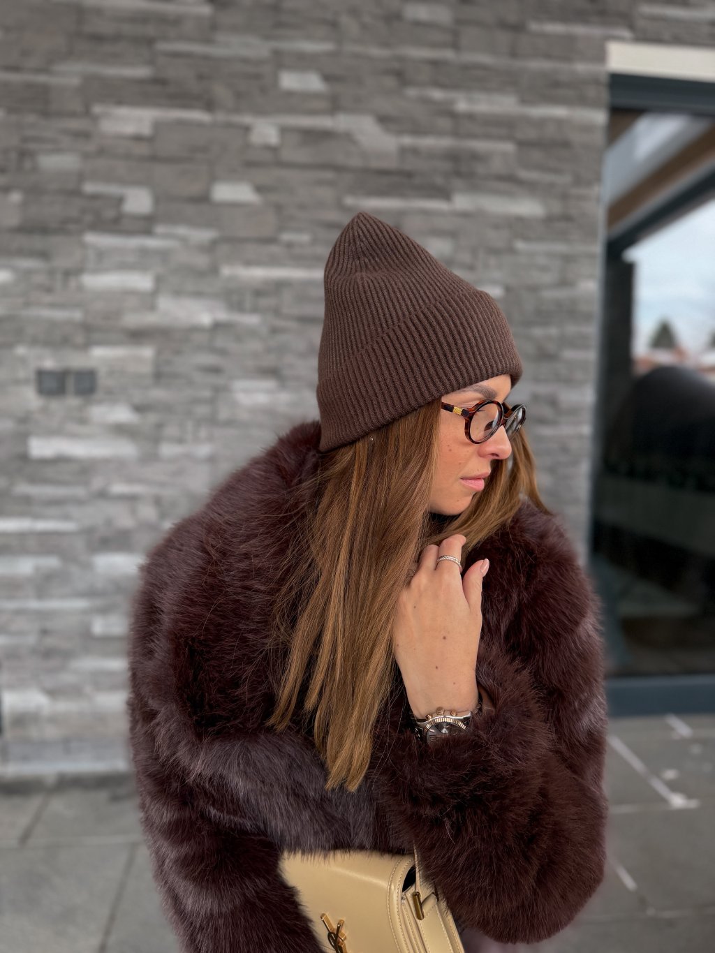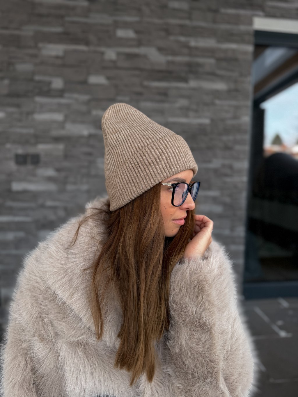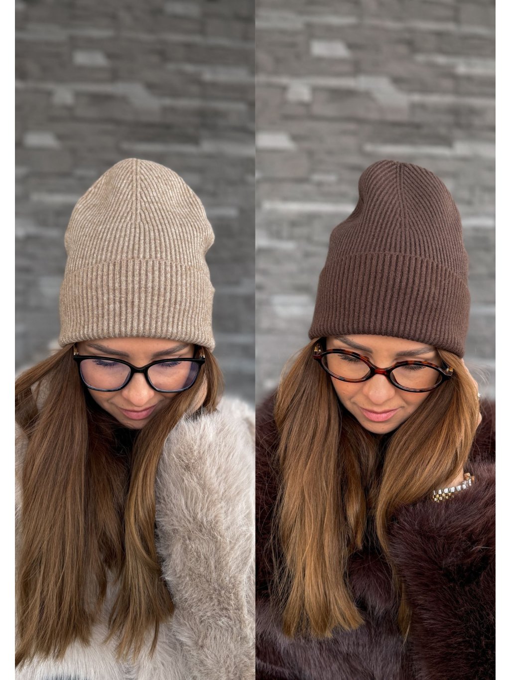 Pletená, měkkoučká, čepice ze silnějšího materiálu.