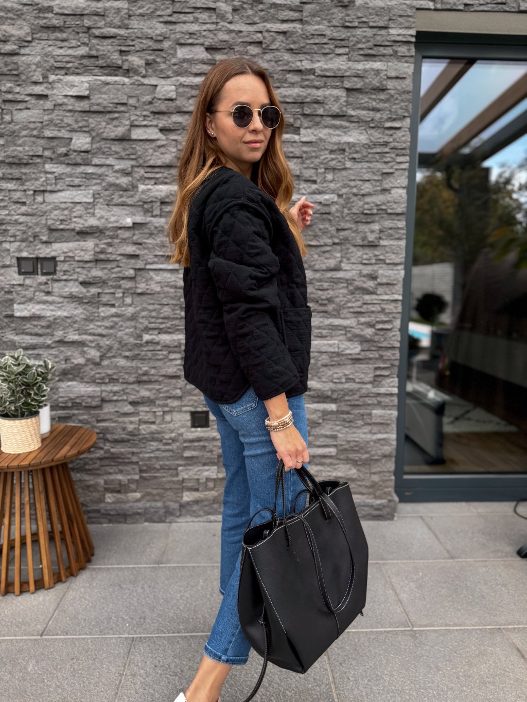 Měkkoučká, prošívaná bunda, lehce oversized střihu, propínací.