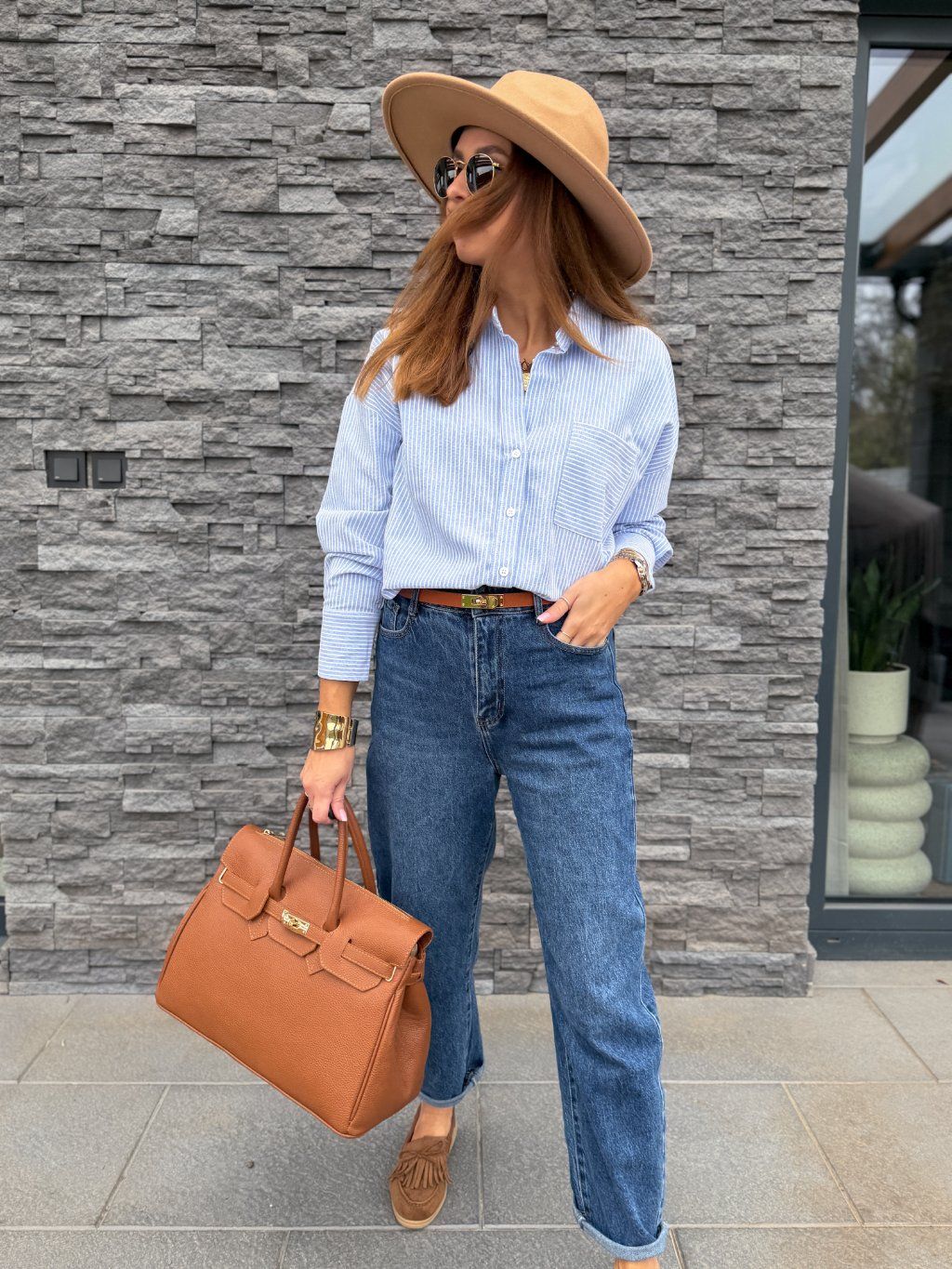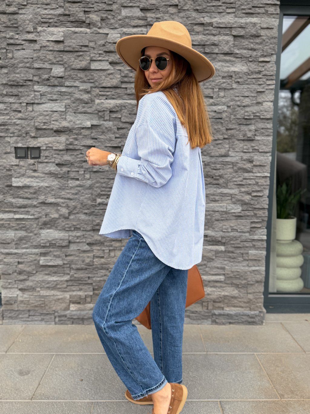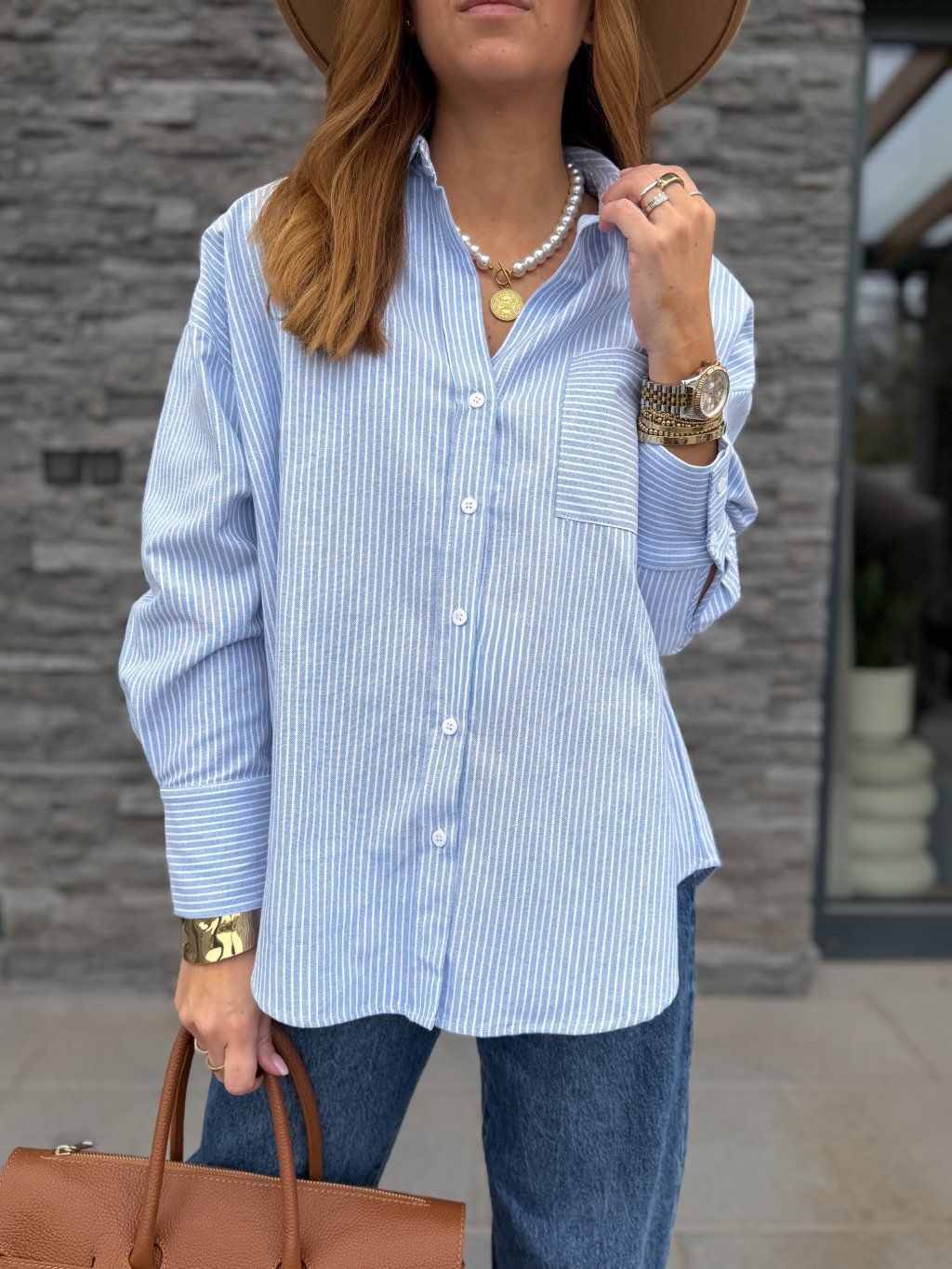 Pruhovaná, vysocegramážní košile. Krásný střih s kulatým, spodním lemem.