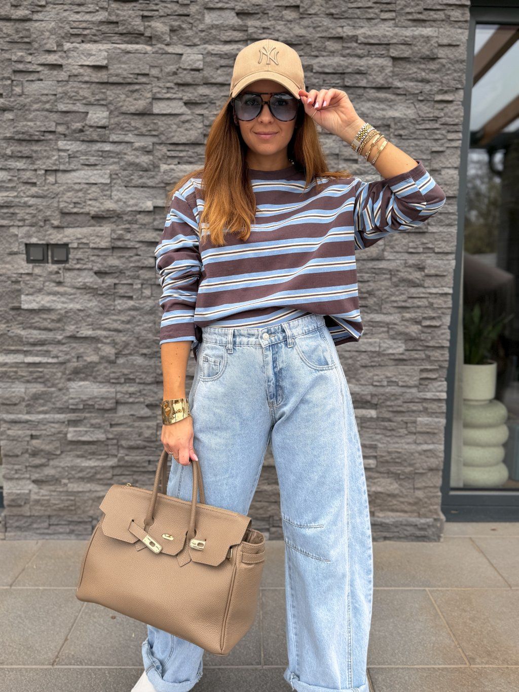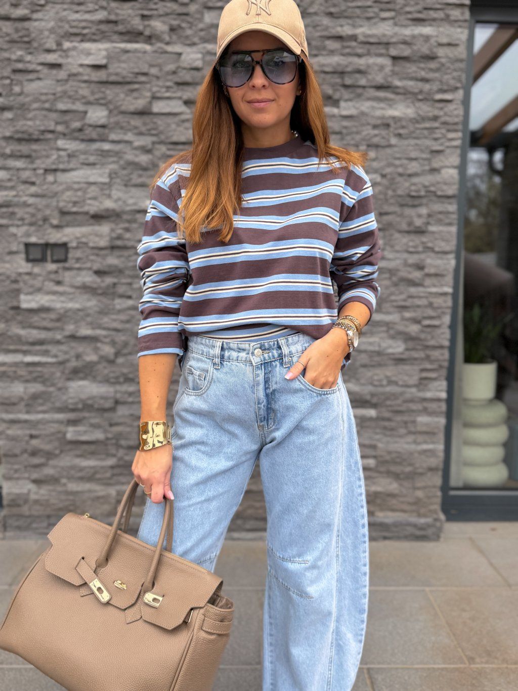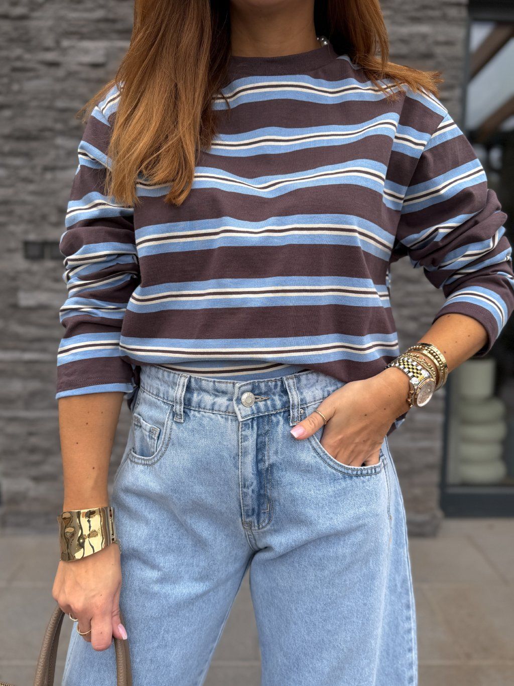 Trendy, kvalitní svetr s pruhy.