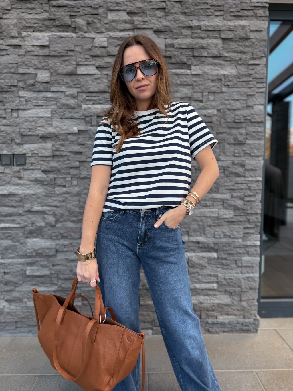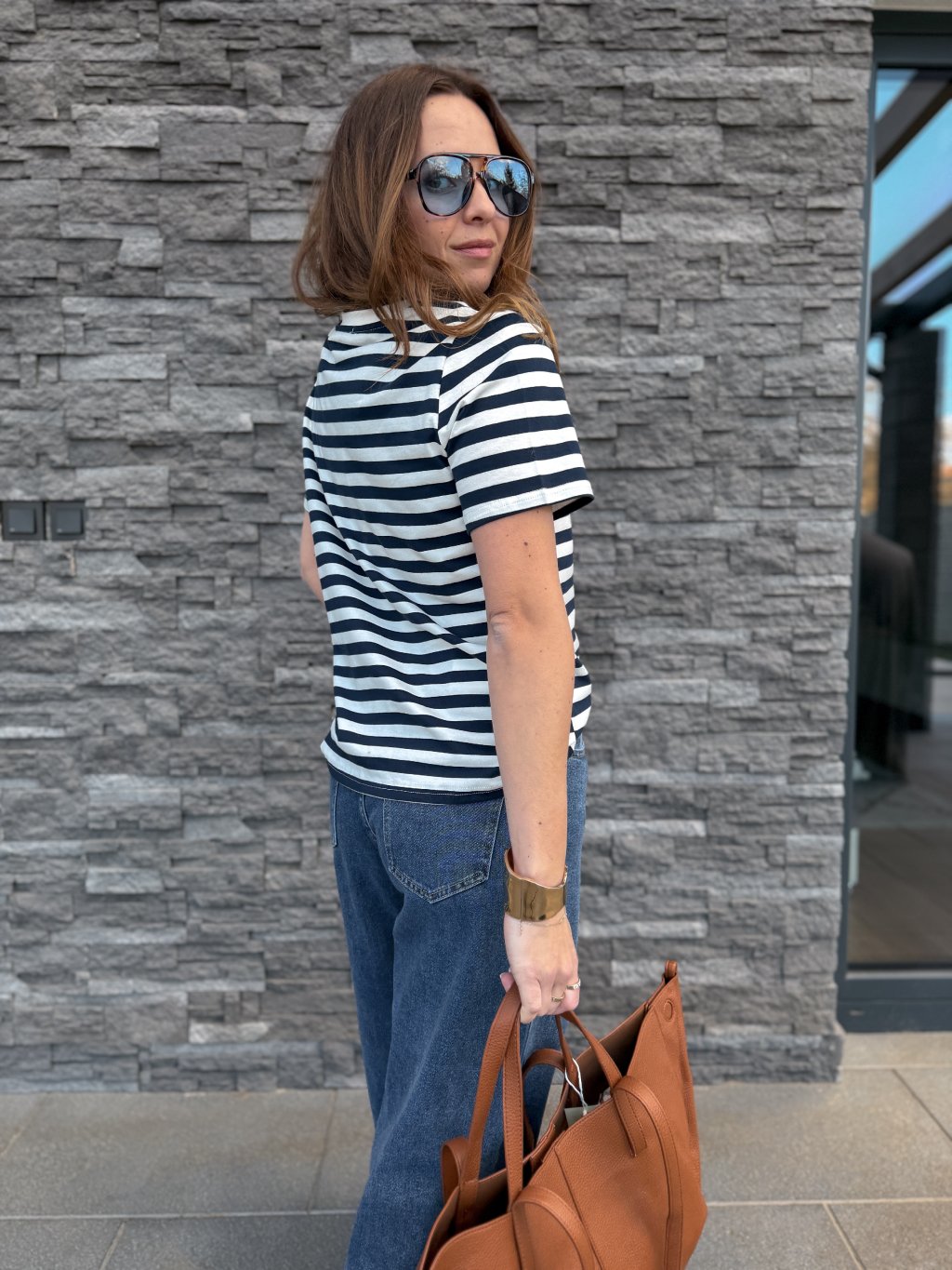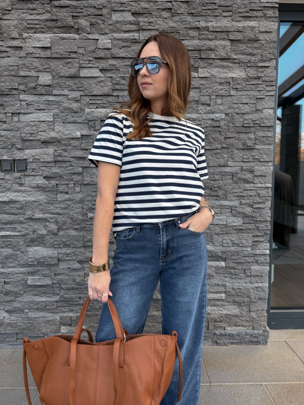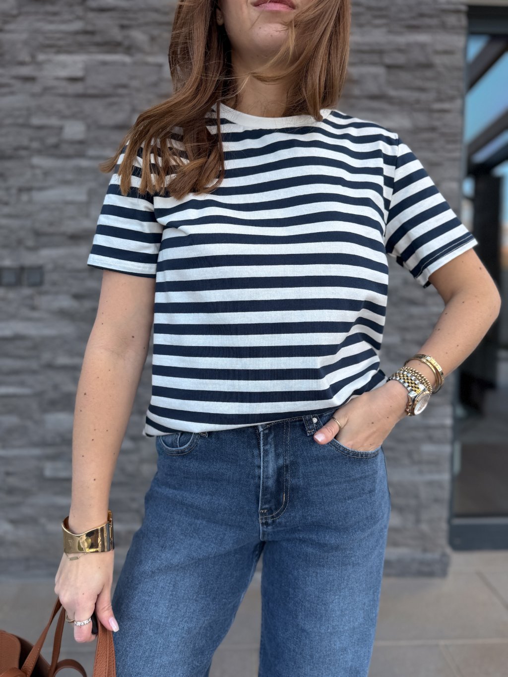 Klasické, bavlněné pruhované tričko. Jednoduchý střih ke krku, vysocegramážní materiál.