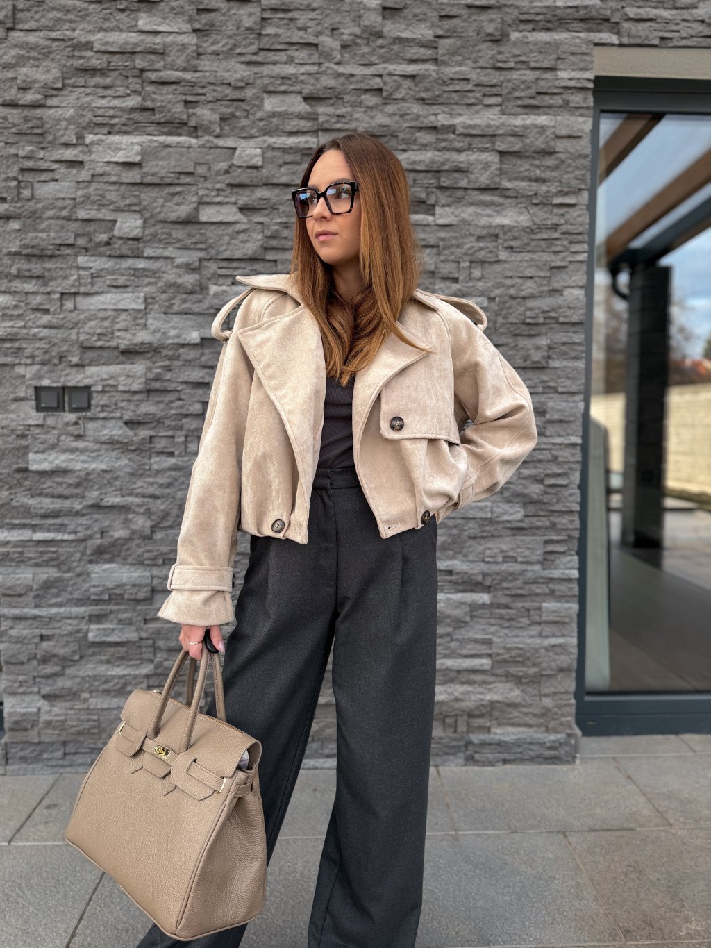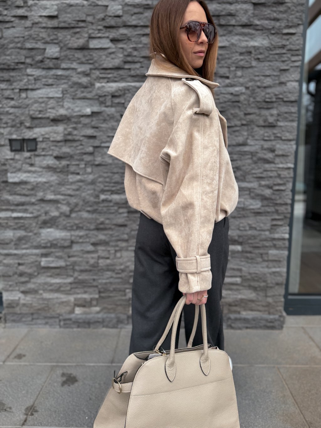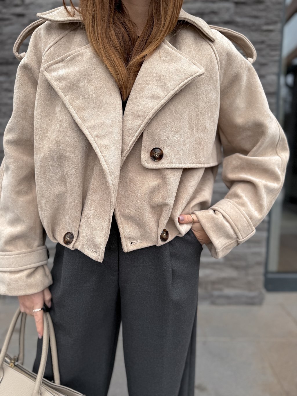 Nádherná, semišová bundička. Trendy, lehce oversized střih.