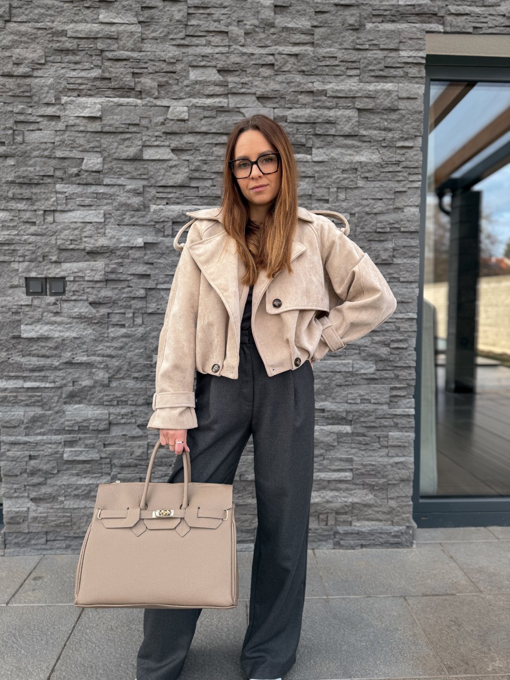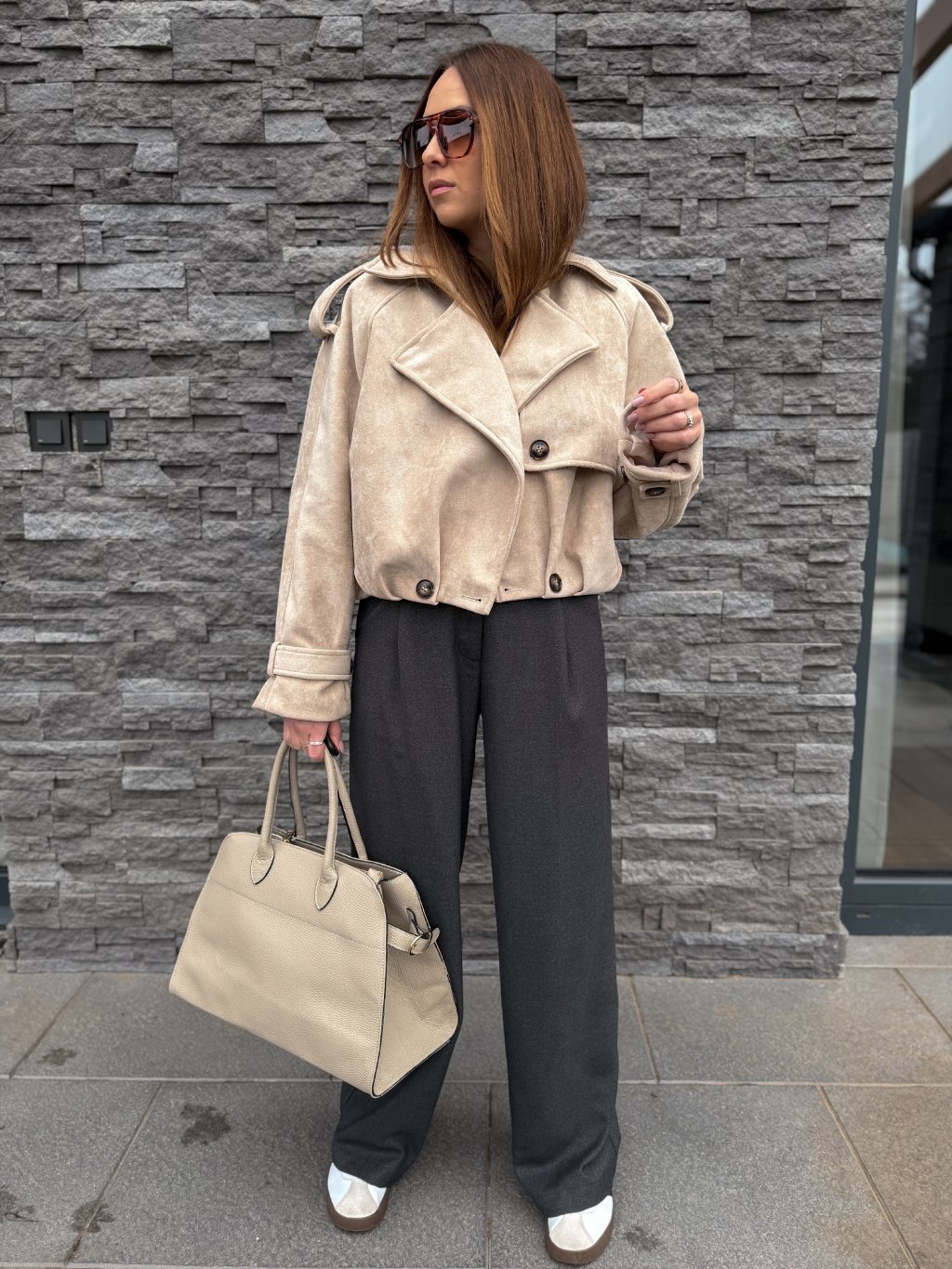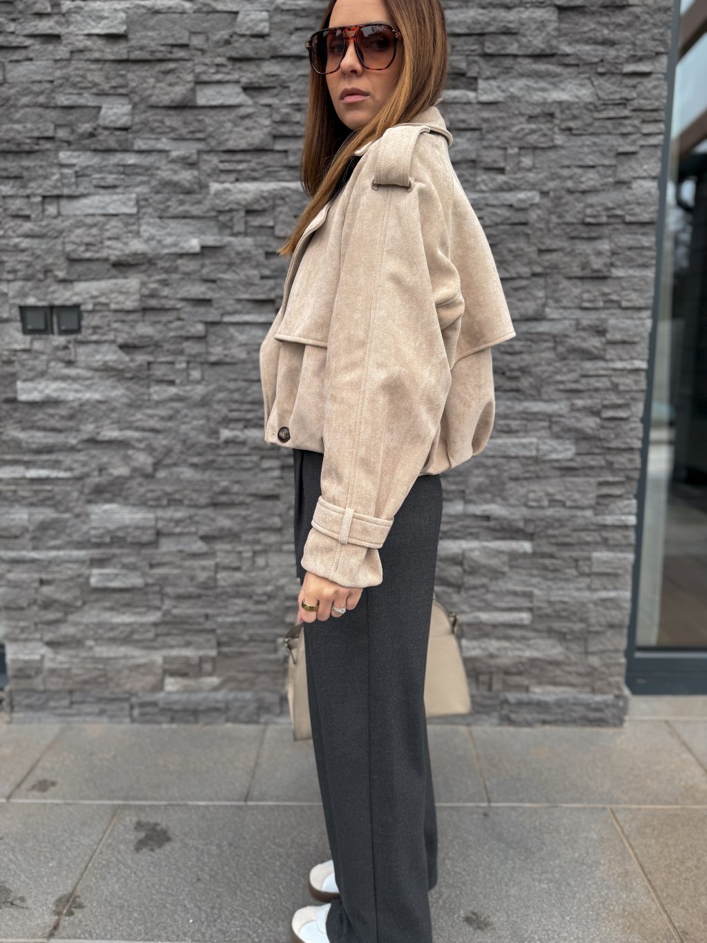 Nádherná, semišová bundička. Trendy, lehce oversized střih.