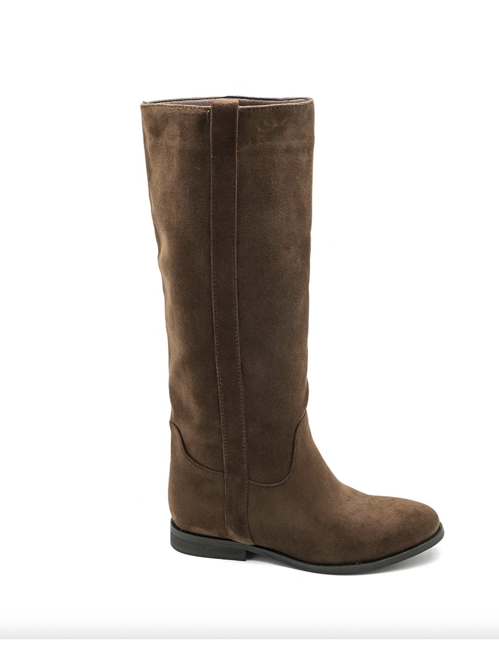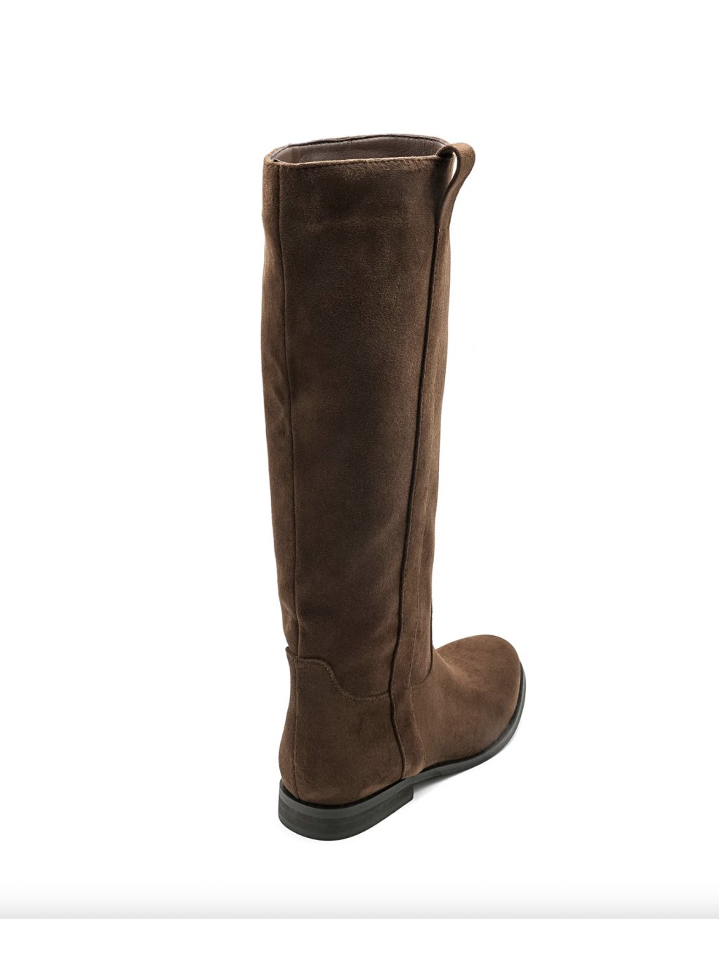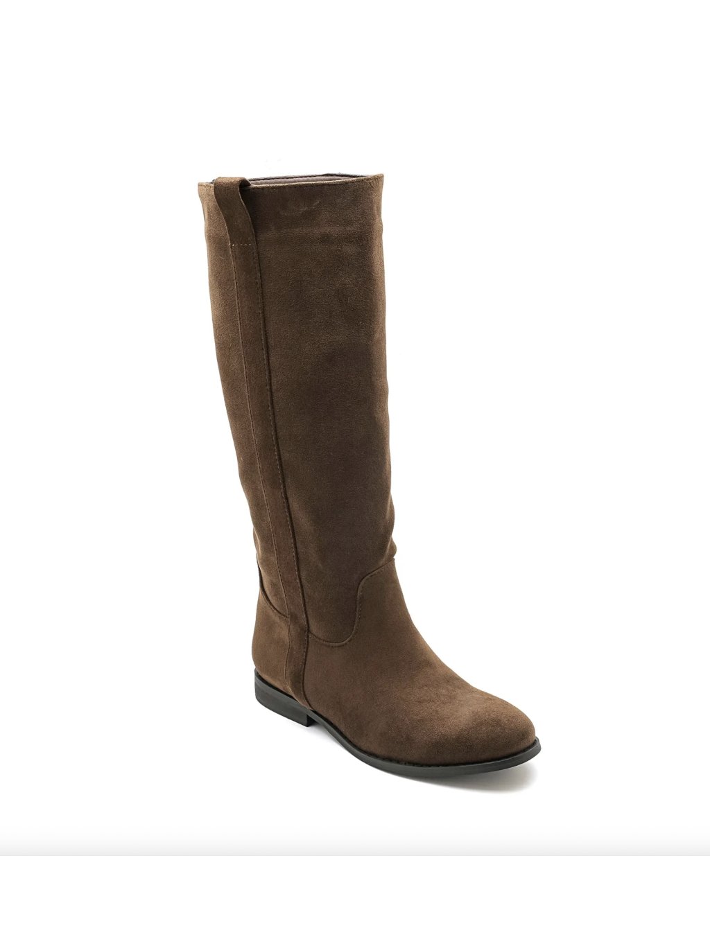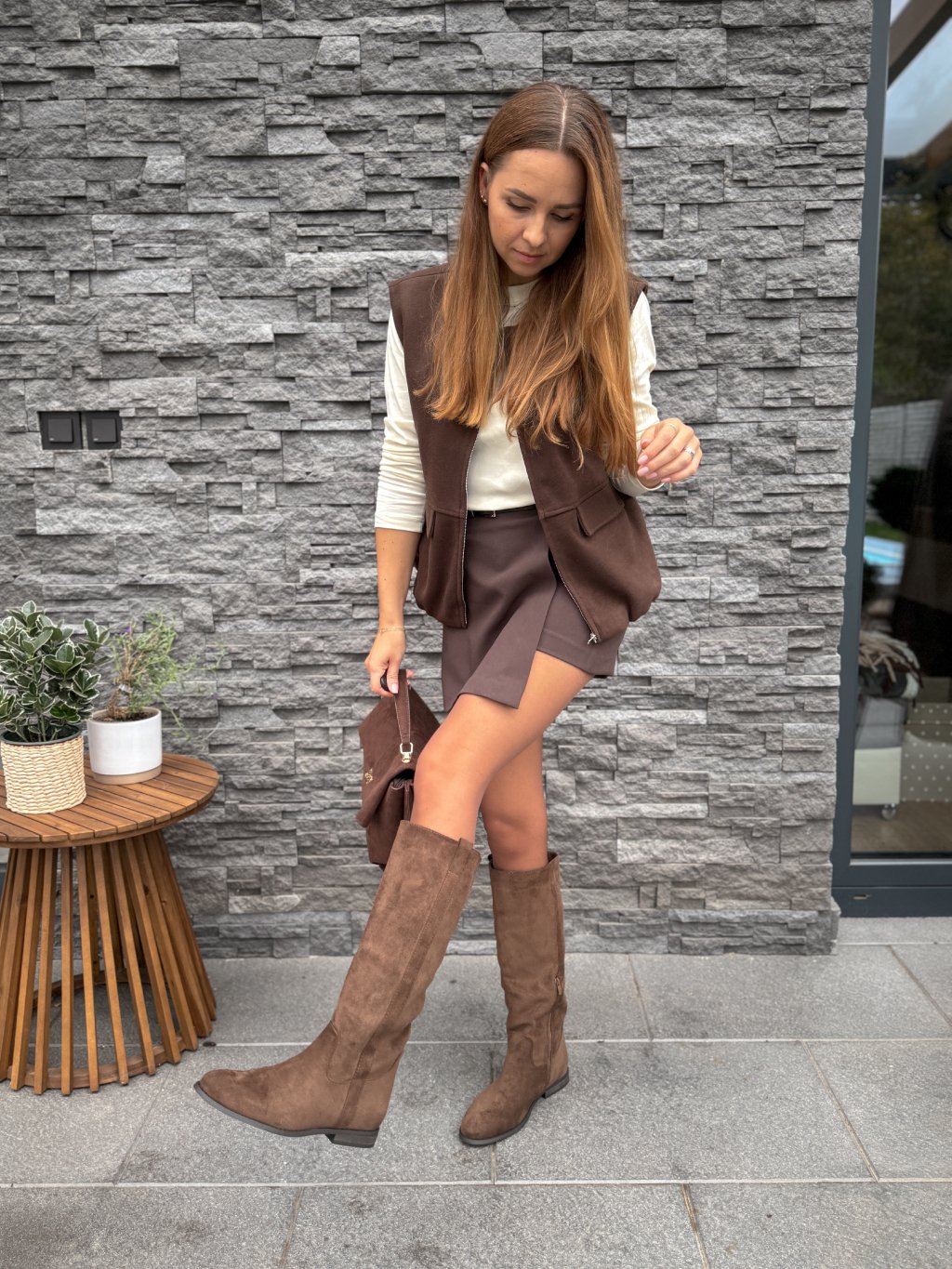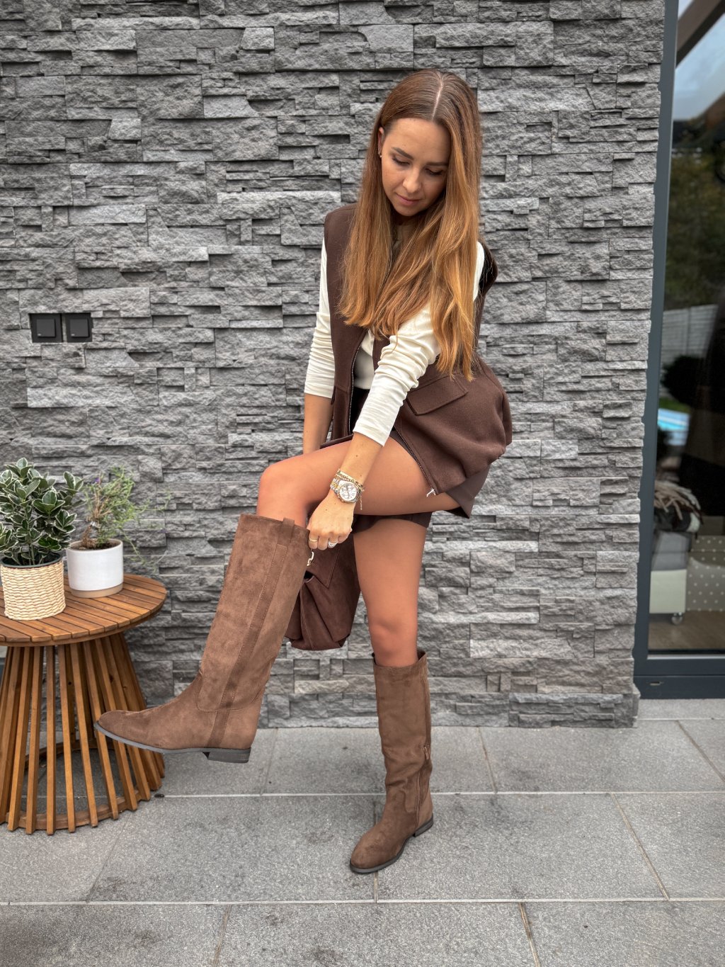 Překrásné, tmavě hnědé kozačky v provedení broušené kůže.