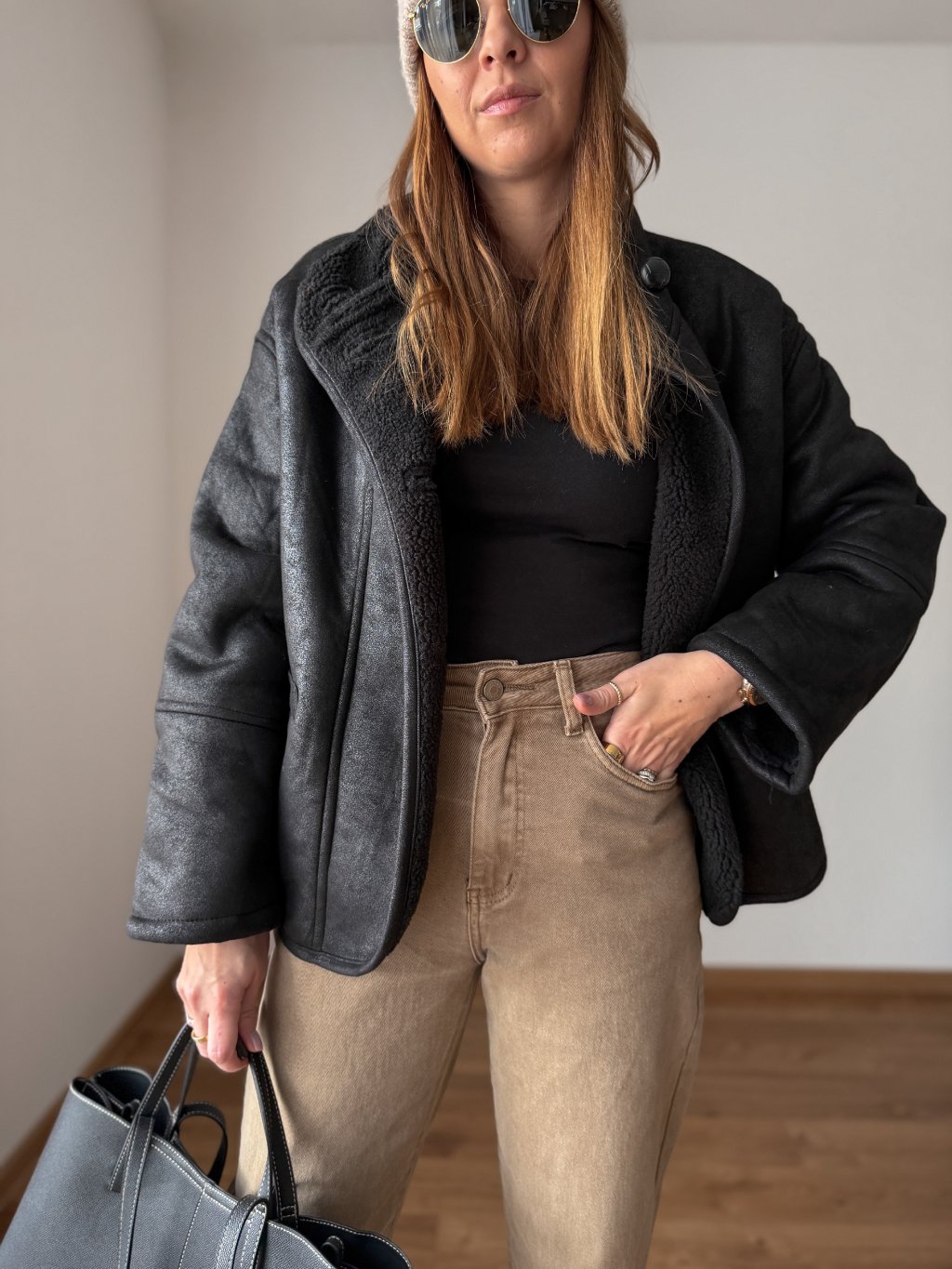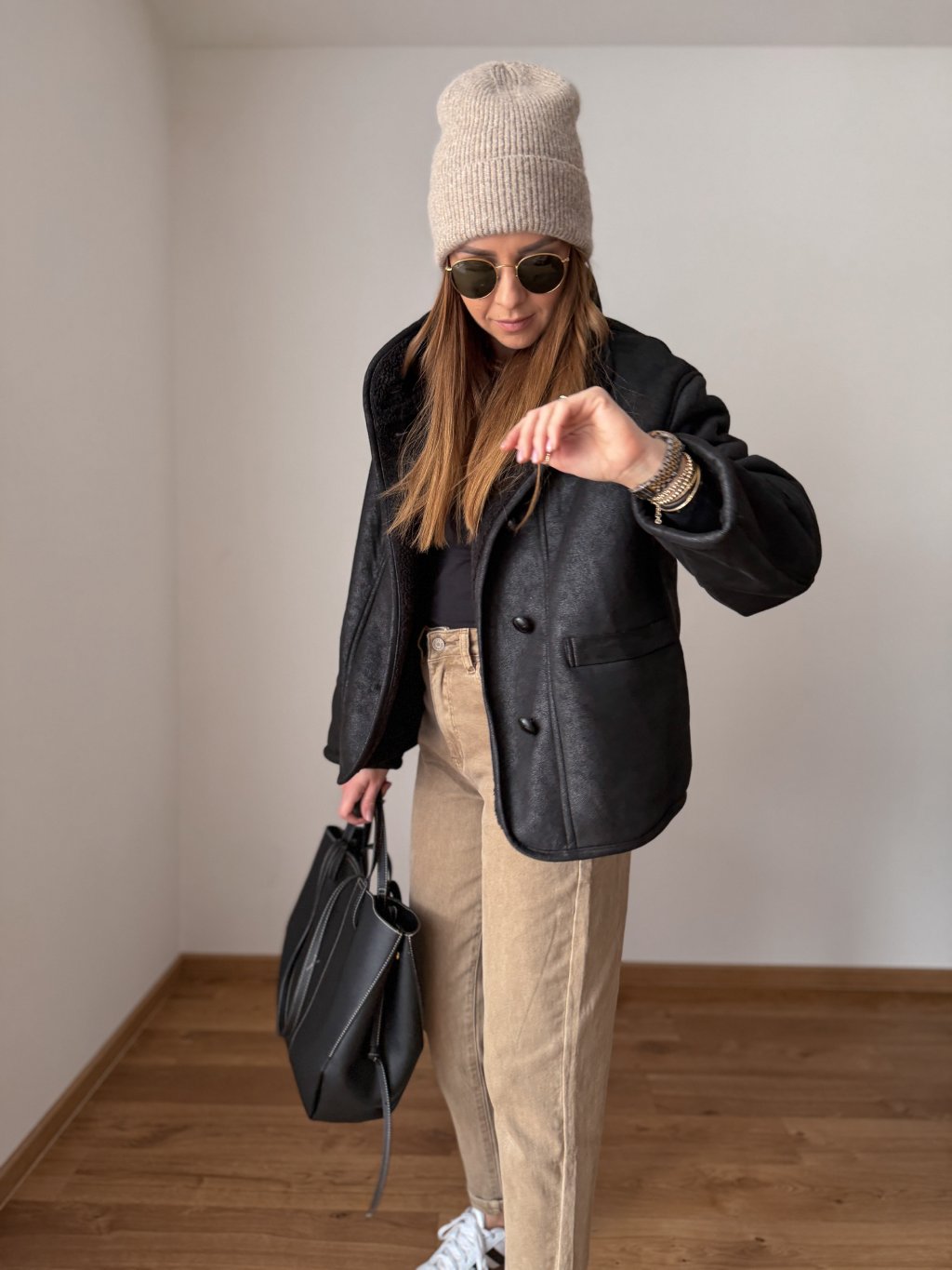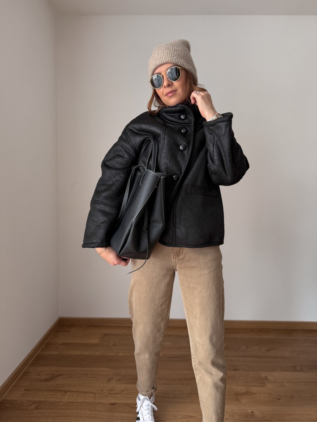 Stylový, pohodlný střih se stojáčkem. Zapínání na knoflíky, zevnitř kožíšek po celém vnitřku bundy.