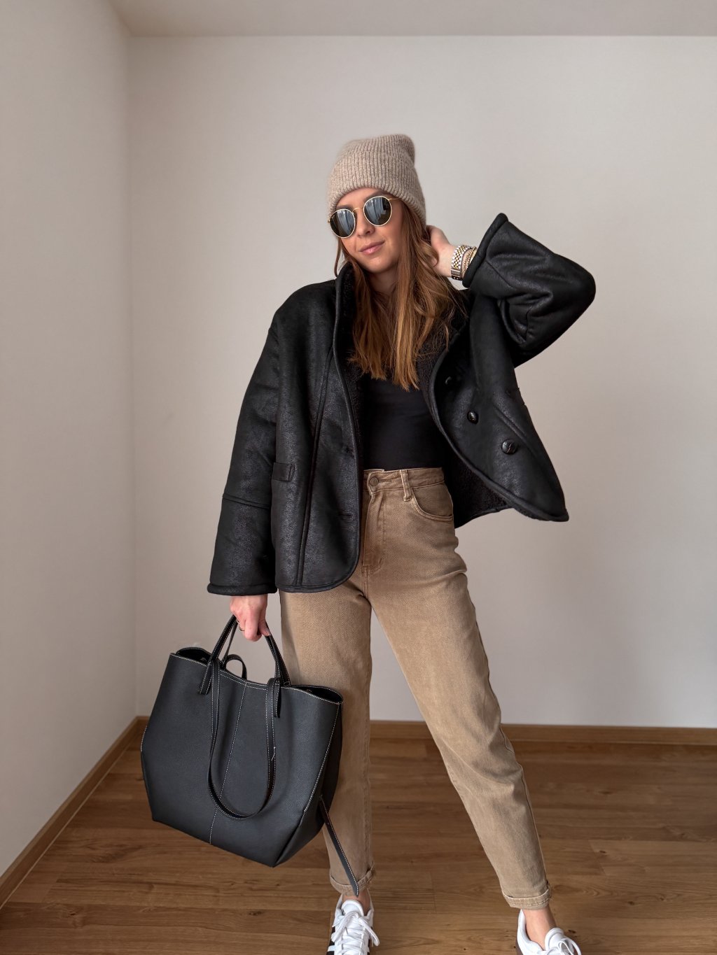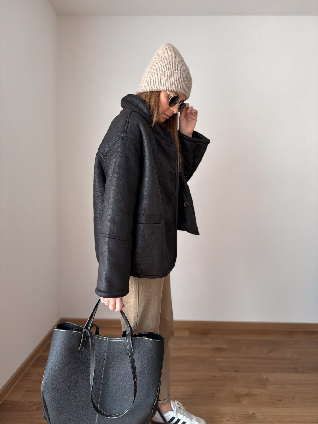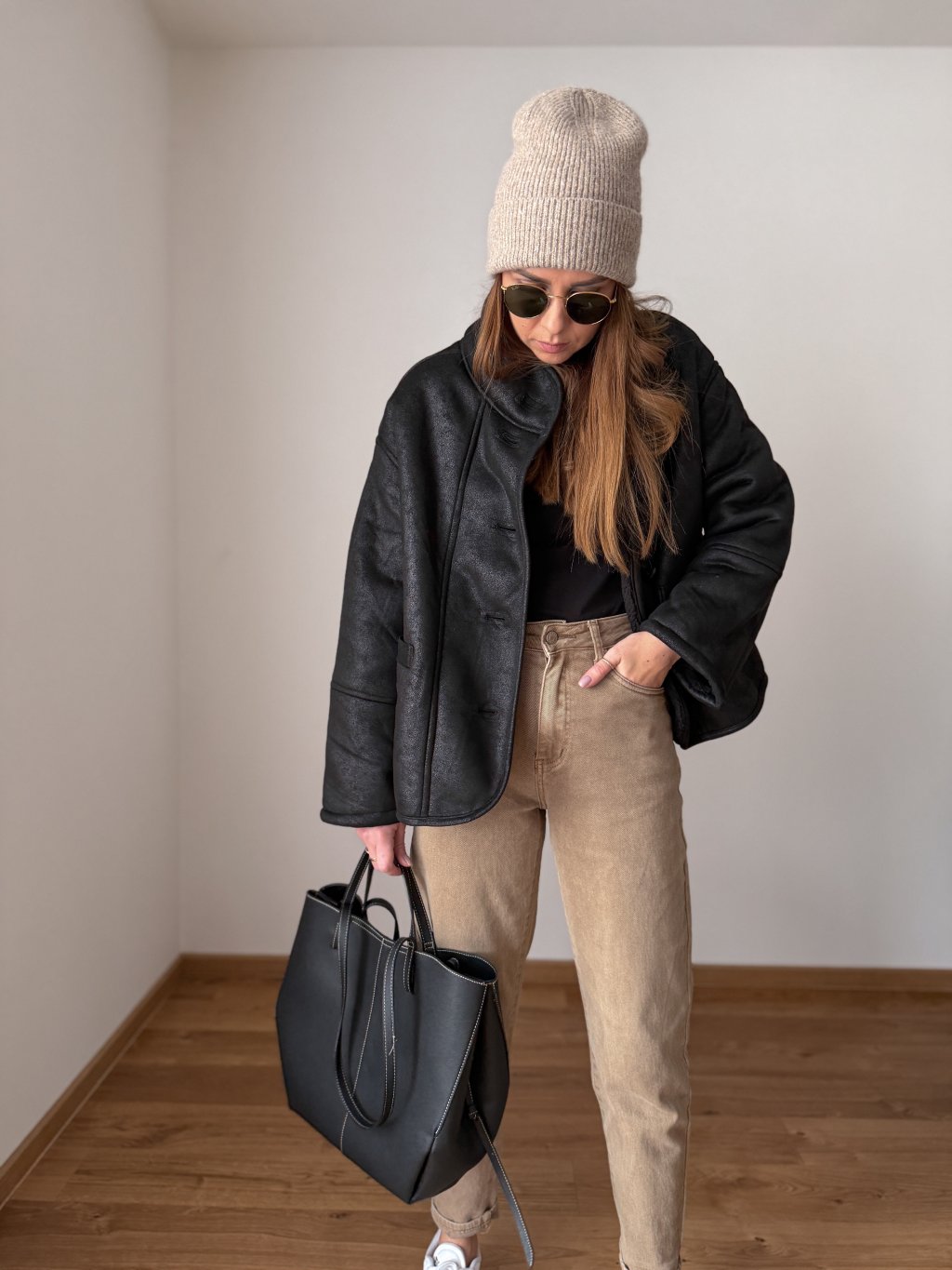Stylový, pohodlný střih se stojáčkem. Zapínání na knoflíky, zevnitř kožíšek po celém vnitřku bundy.