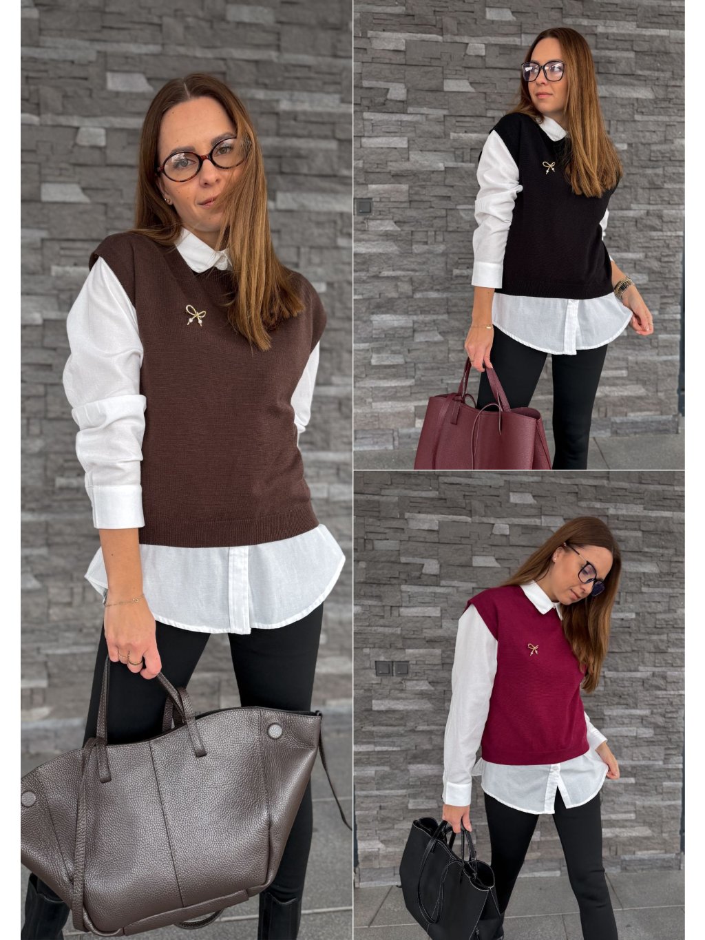 Luxusní, pletená vesta. Vypadá bombasticky s klasickou bílou košilí.