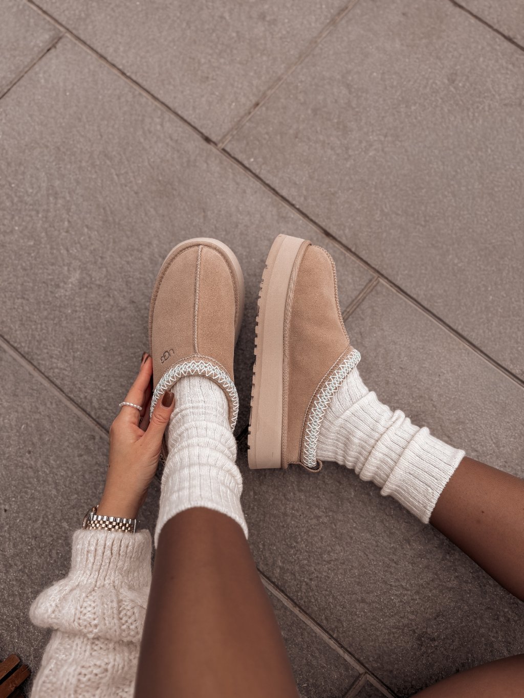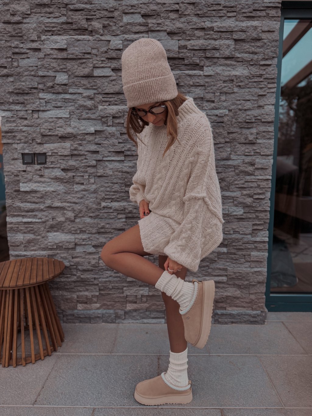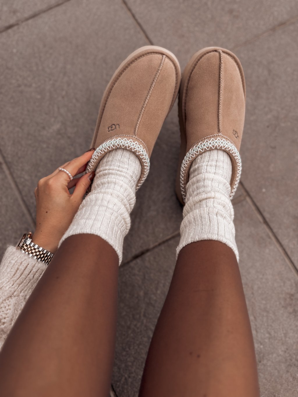 Krásné, krémové ponožky s vlnou.
