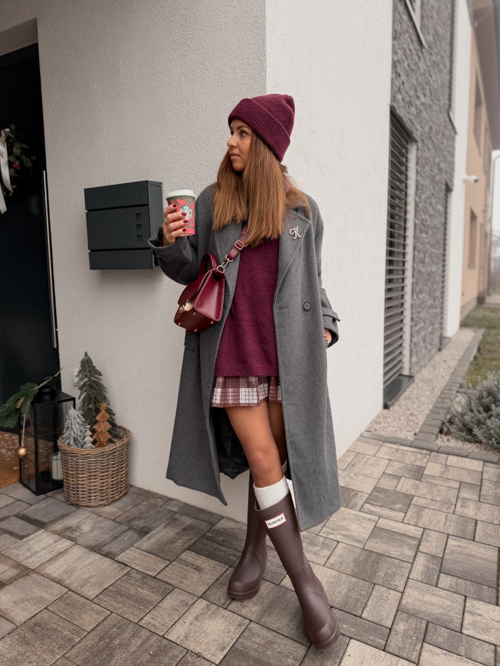 Kabát má větší podíl vlny, takže hezky drží teplo.